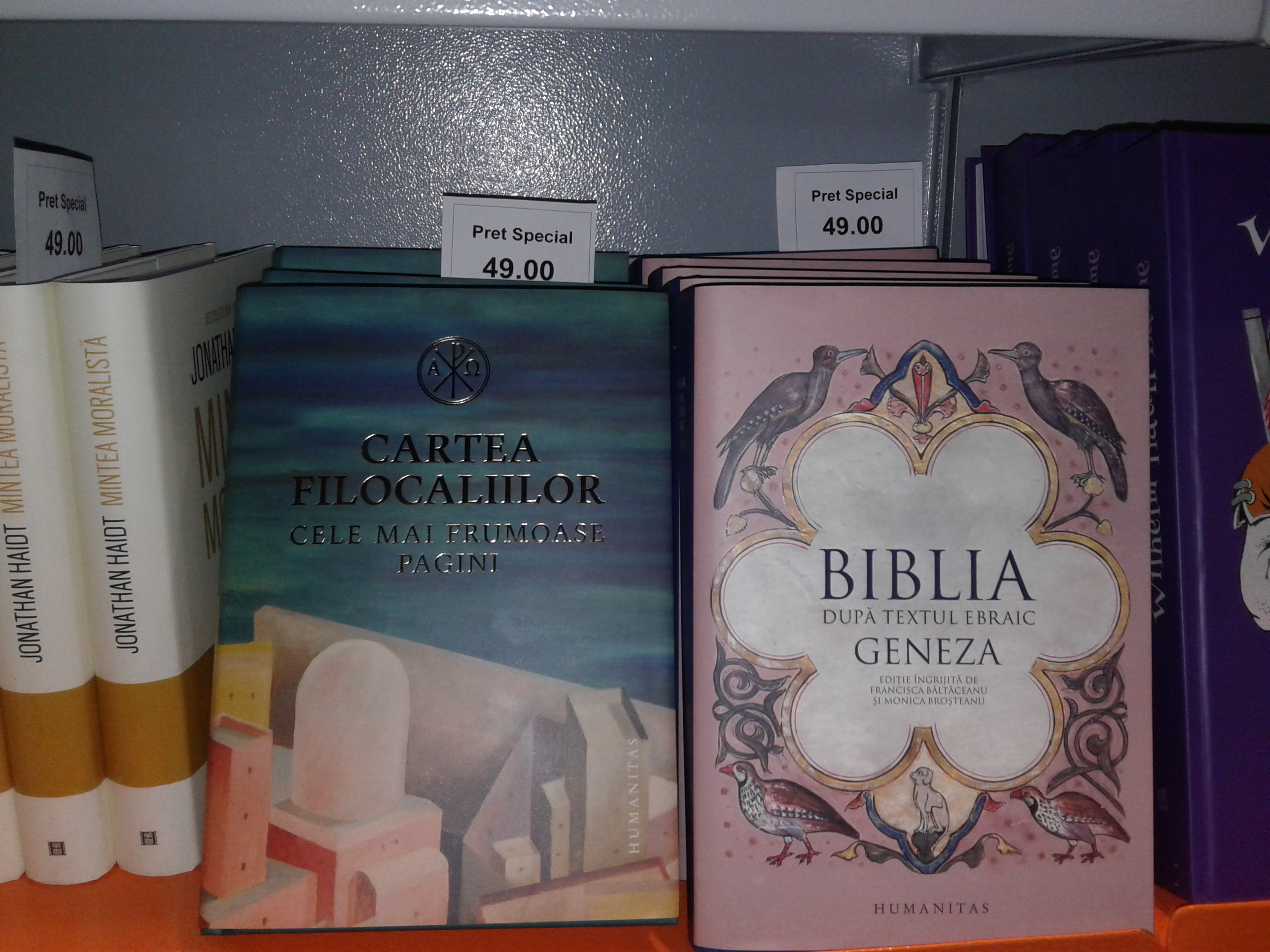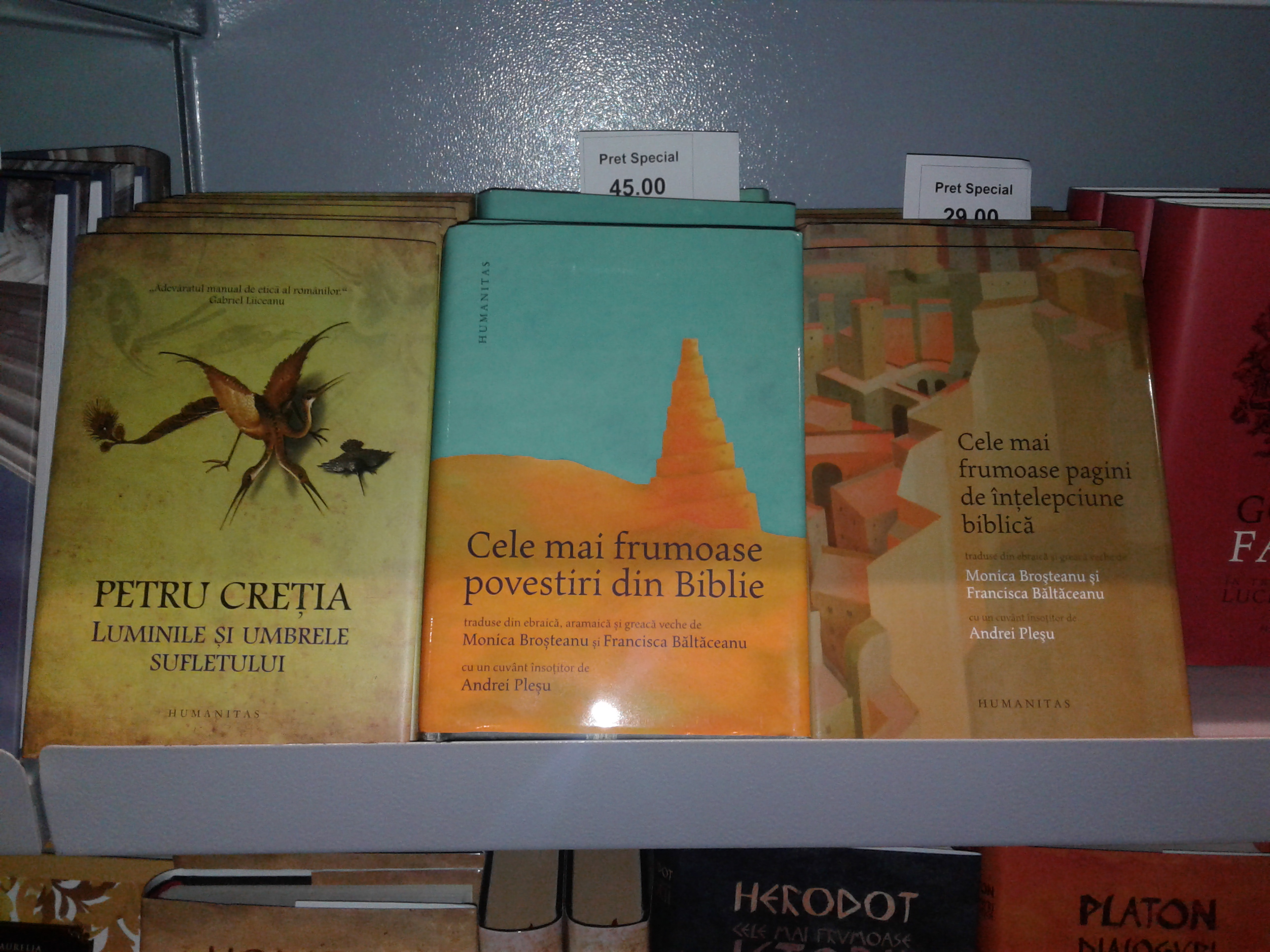 Cele mai frumoase povestiri din Biblie în traducerea din ebraică, aramaică și greaca veche de Monica Broșteanu și Francisca Băltăceanu (45 lei), Cele mai frumoase pagini de înțelepciune biblică, traduse din ebraică și greaca veche de aceleași două doamne (29 lei)