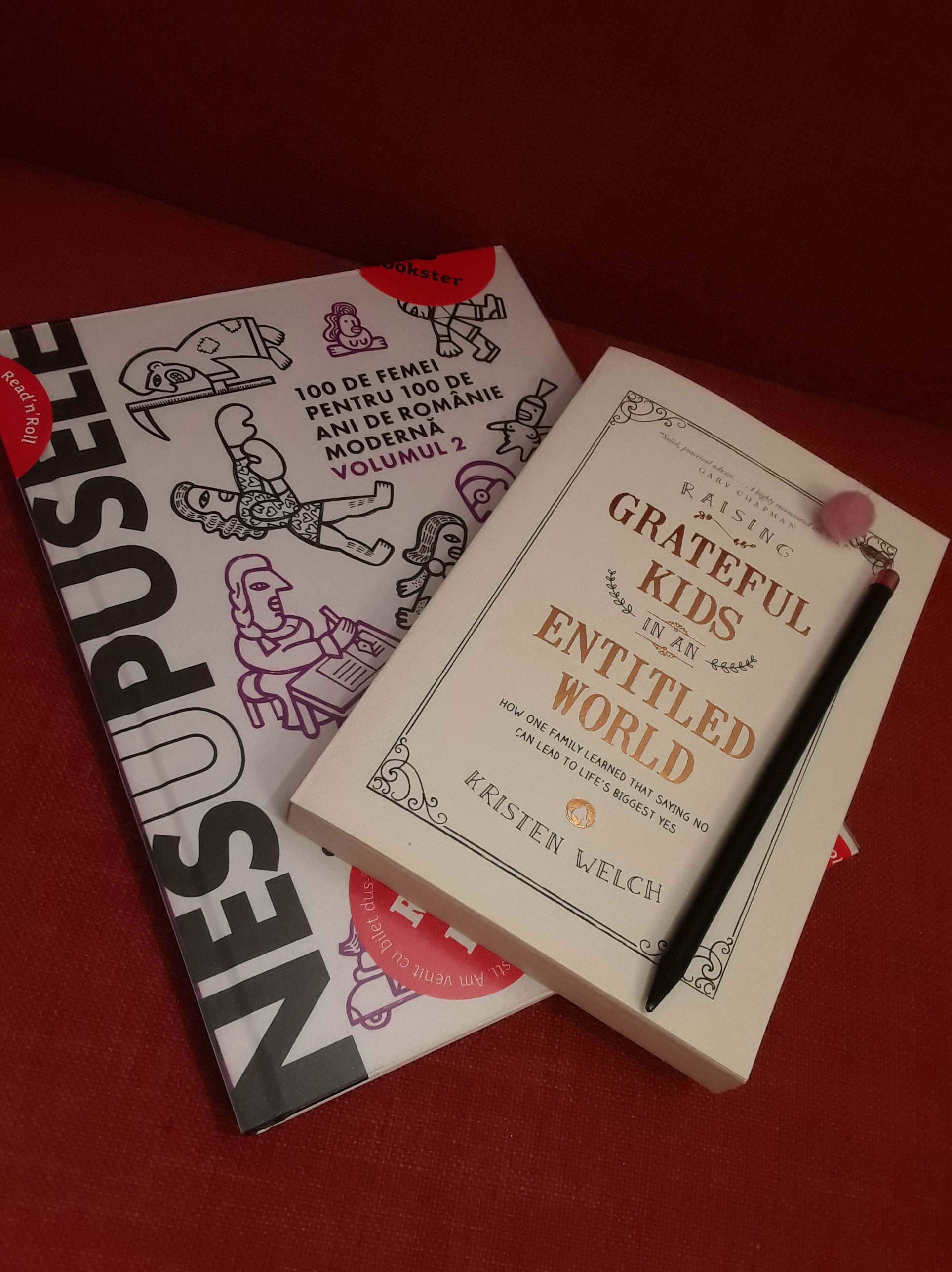 Următoarele cărți pe care le-am citit în paralel au fost Nesupusele. 100 de femei pentru 100 de ani de Românie modernă (vol.2) de Cristina Andone, Adina Rosetti, Veronica Pătrașcu, Iulia Iordan și Laura Grunberg, Raising Grateful Kids in An Entitled World de Kristen Welch (a mea) și Arta de a-ți crea amintiri de Meik Viking.