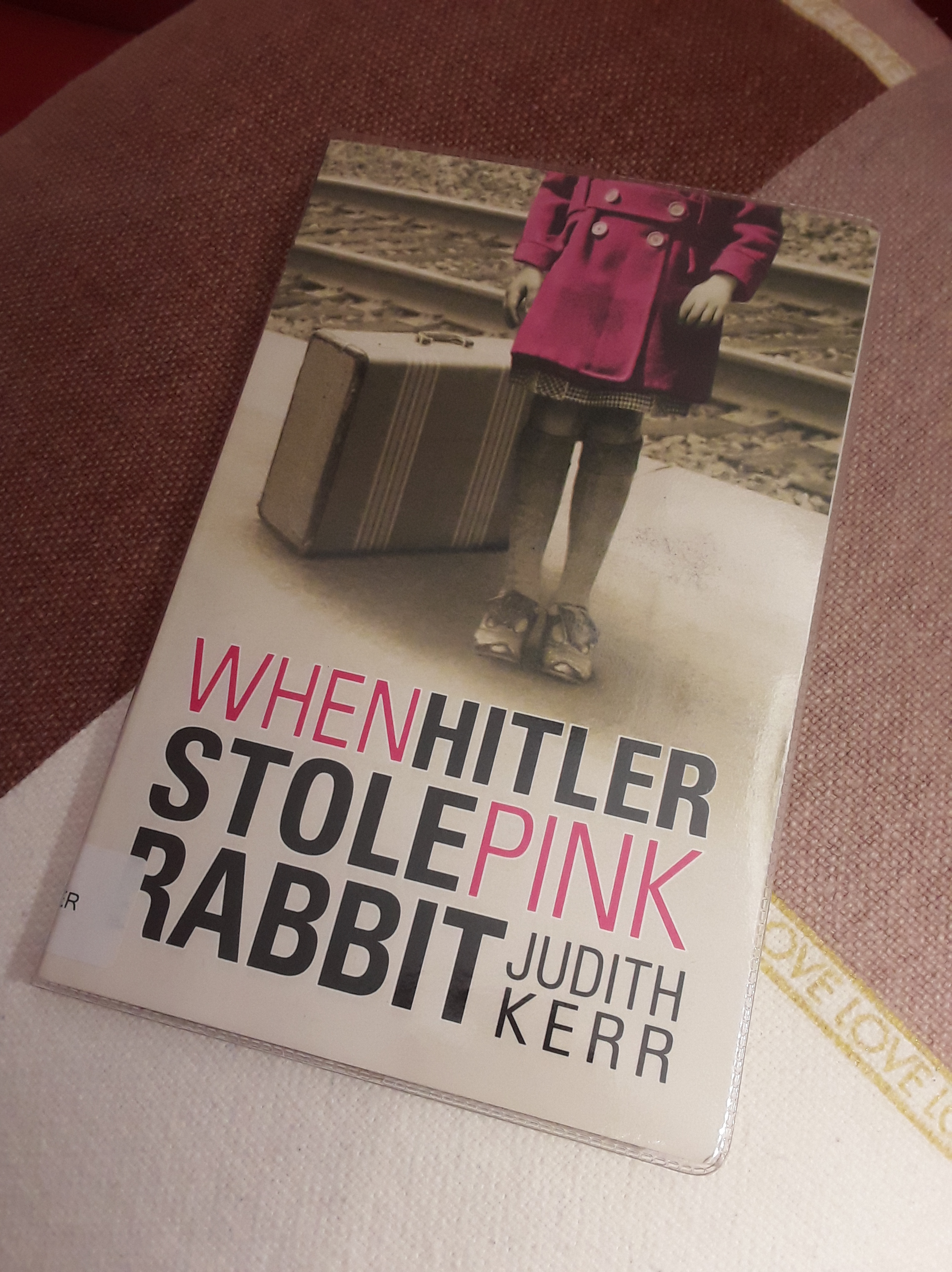 When Hitler Stole Pink Rabbit de Judith Kerr (Când Hitler mi-a furat iepurașul roz) este o carte clasică în lumea anglofonă, evident despre epoca lui Hitler, profund autobiografică. Ea prezintă periplul unei familii de evrei germani forțată să-și caute o altă patrie/casă din cauza regimului lui Hitler și modul în care se adaptează în noile medii în care ajung, mai întâi în Elveția, apoi în Franța, pentru ca, la finalul cărții să-i aflăm în Anglia. Nu mai citisem ceva pe această temă din această perspectivă, a unui copil care trebuie să o ia de la capăt în aceea perioadă, să-și reia studiile într-o limbă străină. Nu este așadar, o carte despre Holocaust, nu are nimic din ororile războiului, nici măcar prea mult din suspansul unei vieți pe fugă, ci redă multe scene de viață domestică prin ochi de copil.