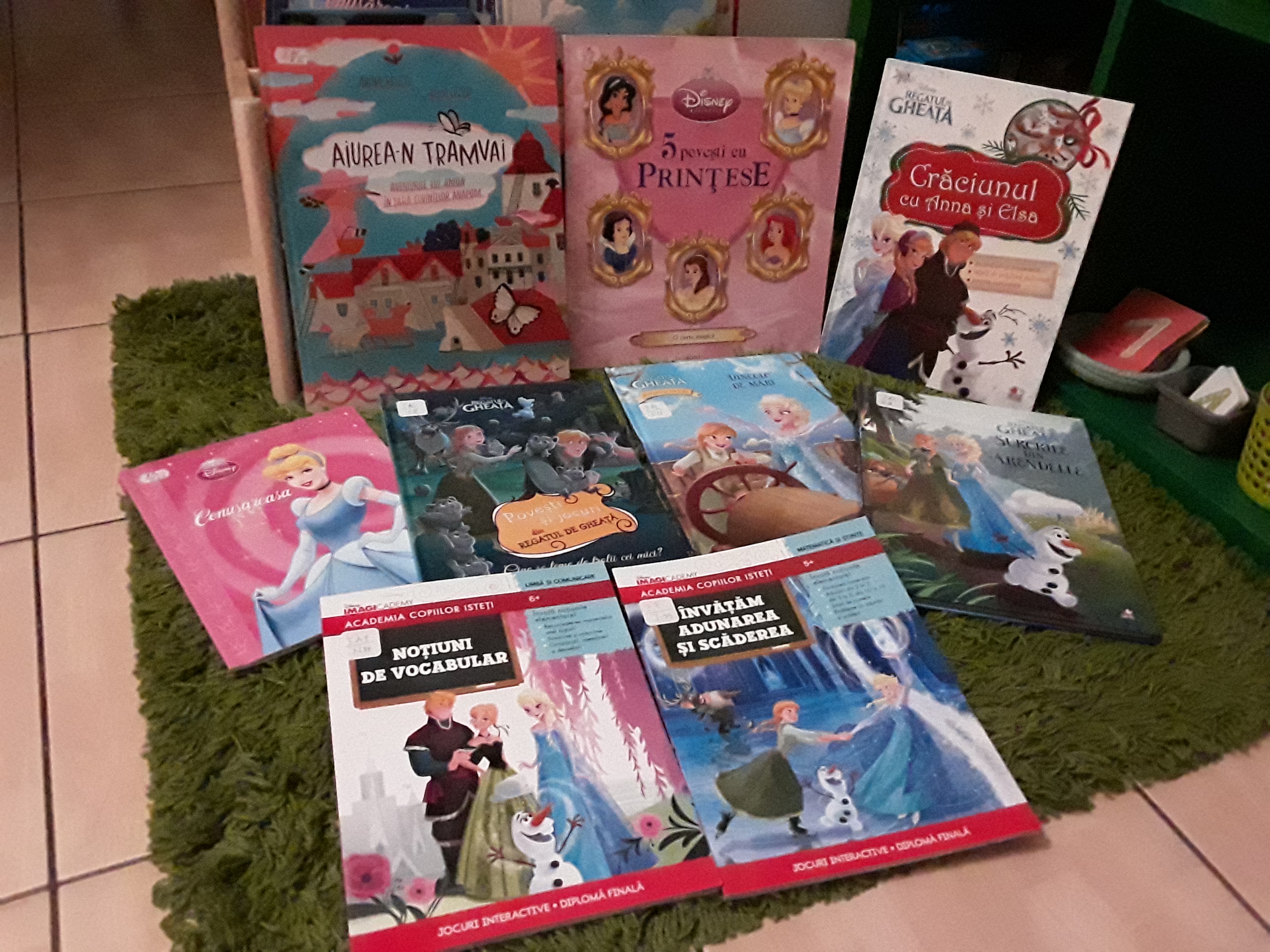 Presărate prin aceste lecturi „serioase”, am citit și câteva cărți luate de la bibliotecă de Mihai sau citite la bibliotecă, asupra cărora n-o să insist, doar o să le menționez: Regatul de gheață – O zi de vară perfectă pentru Olaf, Frumoasa și Bestia, Cenușăreasa, Cei trei purceluși, În bucătăria prințeselor, altă variantă de Cenușăreasa, 5 povești cu prințese, Regatul de gheață: Cine se teme de trolii cei mici?, Regatul de gheață: Dincolo de mări, Regatul de gheață: Surorile din Arendelle, Povești cu prinți, Poveste de vară de Jill Barklem și Tout autour de moi de Clotilde Perrin.