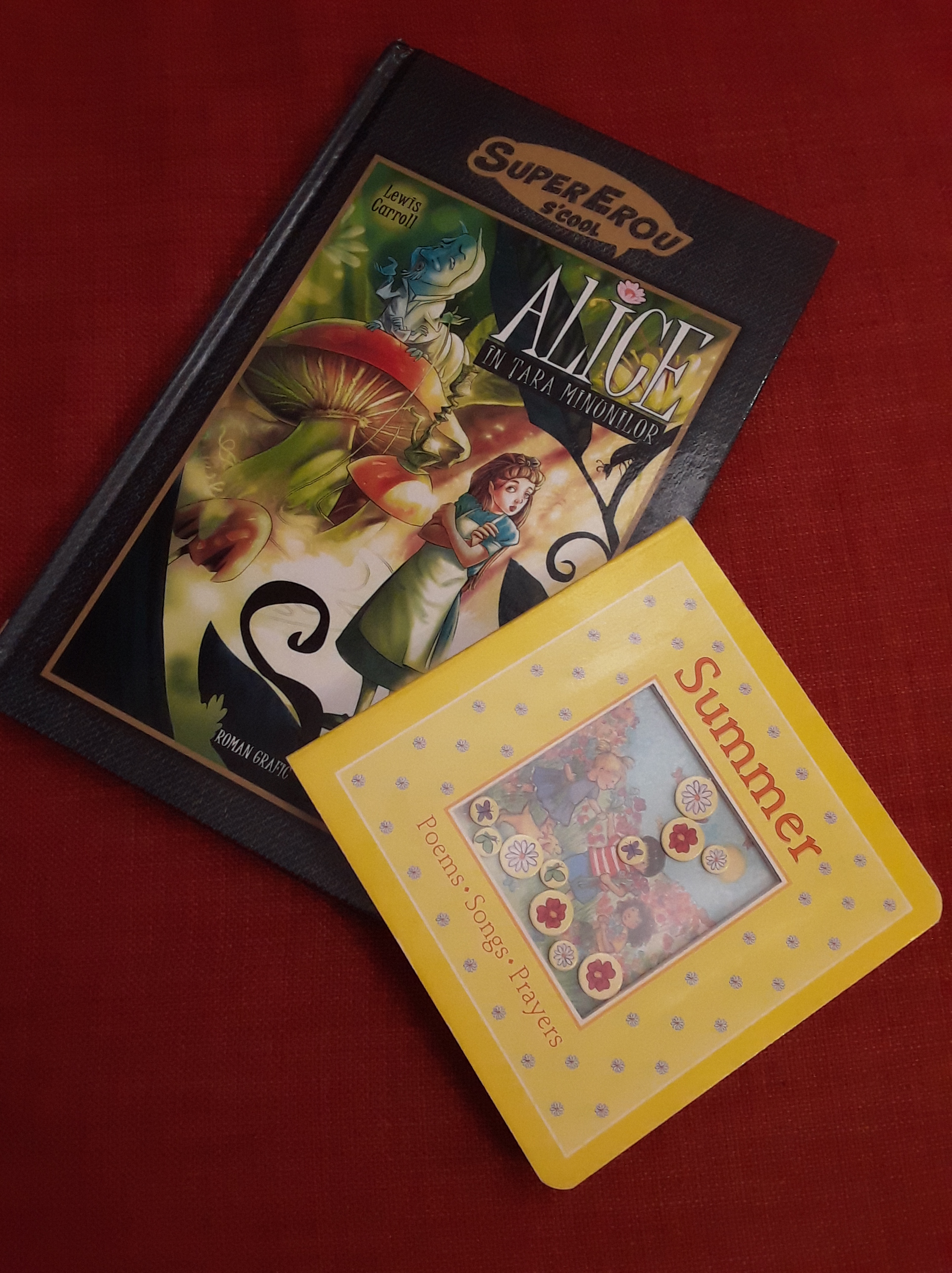 În alte zile, am citit și versiunea Disney a lui Alice și două cărți mari cu clapete, Întrebări și răspunsuri despre hrană și Întrebări și răspunsuri despre timp.