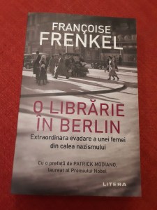 Din fericire, am încheiat luna citind o carte recent apărută care mi-a plăcut foarte mult. Este vorba despre O librărie în Berlin. Extraordinara evadare a unei femei din calea nazismul de Françoise Frenkel. Traducerea titlului este un pic înșelătoare, pentru că partea în care este vorba despre librărie constituie mai puțin de un sfert din carte. Titlul original, Rien où poser sa tête – Nicăieri unde să-ți pui capul, redă mai bine esența cărții, și anume, peregrinarea autoarei de la Berlin la Paris, de la Paris la Nisa, de la Nisa în Savoia, și din Savoia în final în Elveția.
