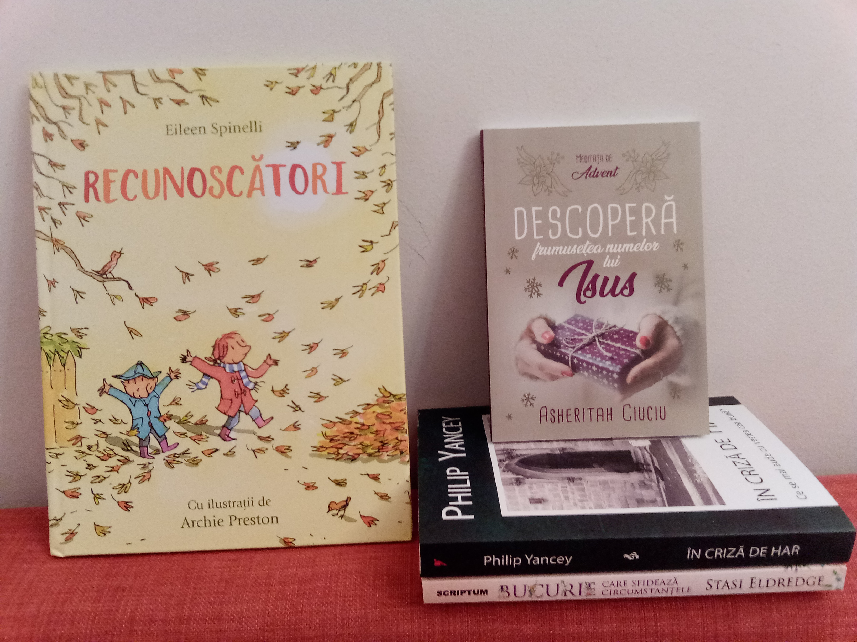 Ultimele cărți citite luna aceasta au fost niște achiziții noi pentru Mihai (dintre care doar pe una i-am dat-o, de fapt, deja): Fizica rachetelor de Chris Ferrie, două cărți muzicale pe care și le dorește de ziua lui și de Crăciun, Paco și Mozart și Paco și Vivaldi (pe care le-am luat reduse la jumătate de preț de pe elefant.ro) și o carte pe care i-am luat-o datorită temei abordate, chiar dacă e cam stângace traducerea versurilor, ilustrațiile sunt adorabile și nu aveam altceva pe această temă, Recunoscători de Eileen Spinelli și Archie Preston.