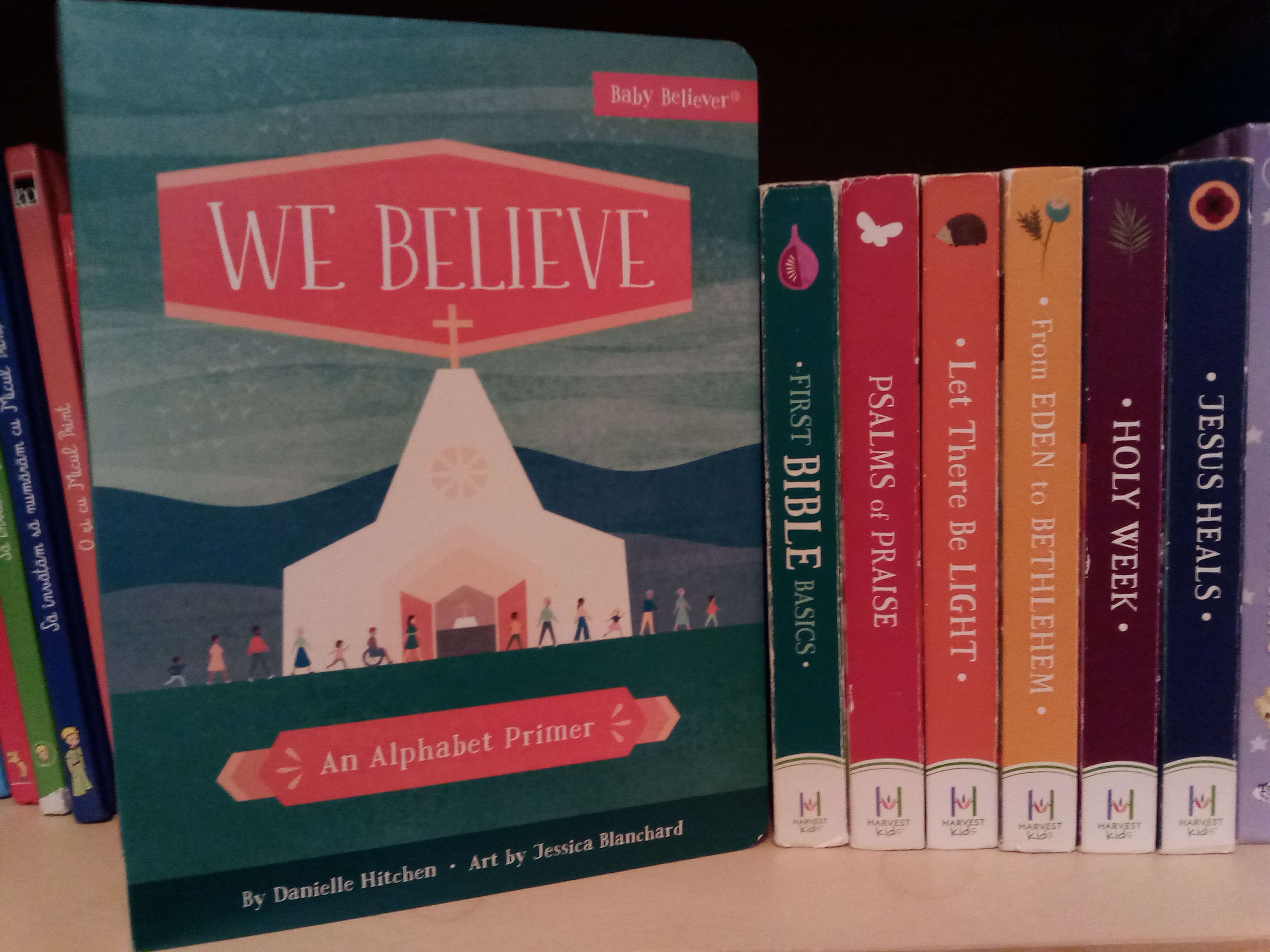 O să încep cu cea mai recentă apariție din colecția Baby Believer de Danielle Hitchen și Jessica Blanchard, We Believe – An Alphabet Primer. Aceste cărți minunate își propun să-i familiarizeze pe copiii mici cu principalele doctrine și episoade din Biblie (alături de versete sau pasaje din imnuri) prin intermediul unor mini-dicționare tematice și al ilustrațiilor fermecătoare.