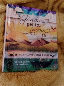 Am terminat apoi o carte începută în ianuarie, Gânduri pentru inima ta de Sally Lloyd-Jones și Jago, un devoțional pentru copii care însă m-am trezit că mă încuraja mai degrabă pe mine în acest an tulbure. Pe alocuri este cam siropoasă pentru gustul meu, dar per total este un volum deosebit, iar ilustrațiile sunt superbe.