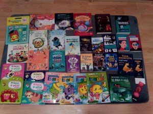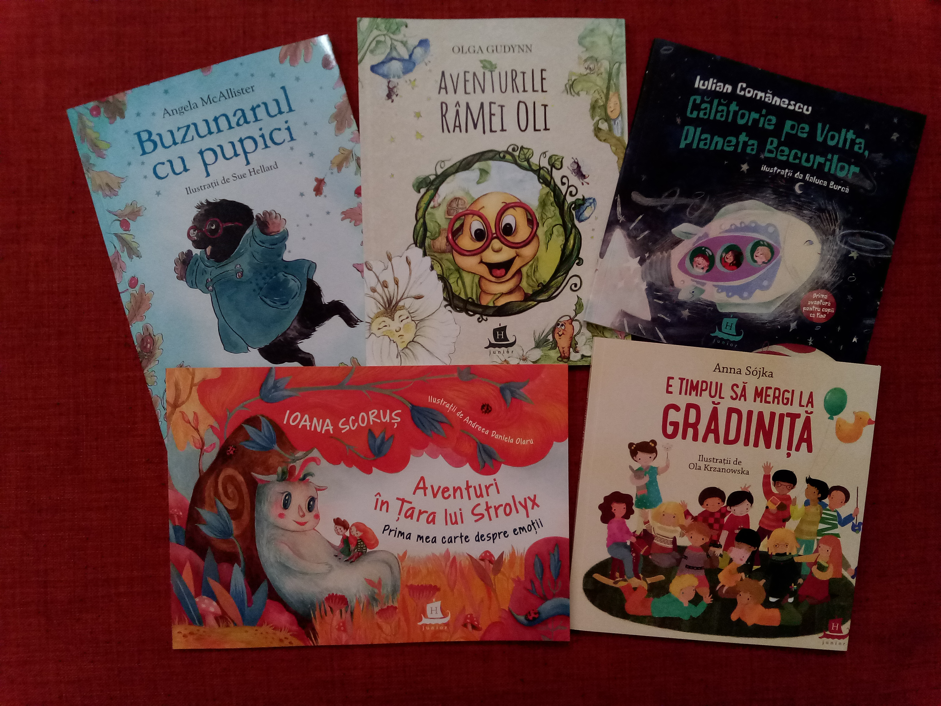 Am început cu cele ilustrate pentru copiii mai mici: Buzunarul cu pupici de Angela McAllister, Aventurile râmei Oli de Olga Gudynn, Călătorie pe Volta, Planeta Becurilor de Iulian Comănescu, Aventuri în Țara lui Strolyx – Prima mea carte despre emoții de Ioana Scoruș și E timpul să mergi la grădiniță de Anna Sójka.