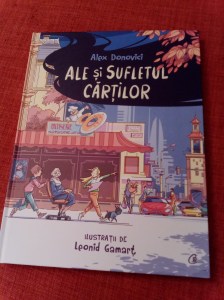 Am primit apoi de ziua mea, printre altele, Ale și Sufletul Cărților de Alex Donovici, cu ilustrații de Leonid Gamarț. Ale trăiește într-un oraș în care nu se mai știe ce sunt acelea cărțile și poveștile. Tocmai de aceea este de o importanță majoră să remedieze acest lucru, descoperind lectura și pornind într-o aventură pentru a găsi vechea bibliotecă a orașului, ce a dispărut într-o ceață misterioasă cu tot cu devotatul ei bibliotecar, tocmai stră-stră-bunicul lui Ale, „Sufletul Cărților”.