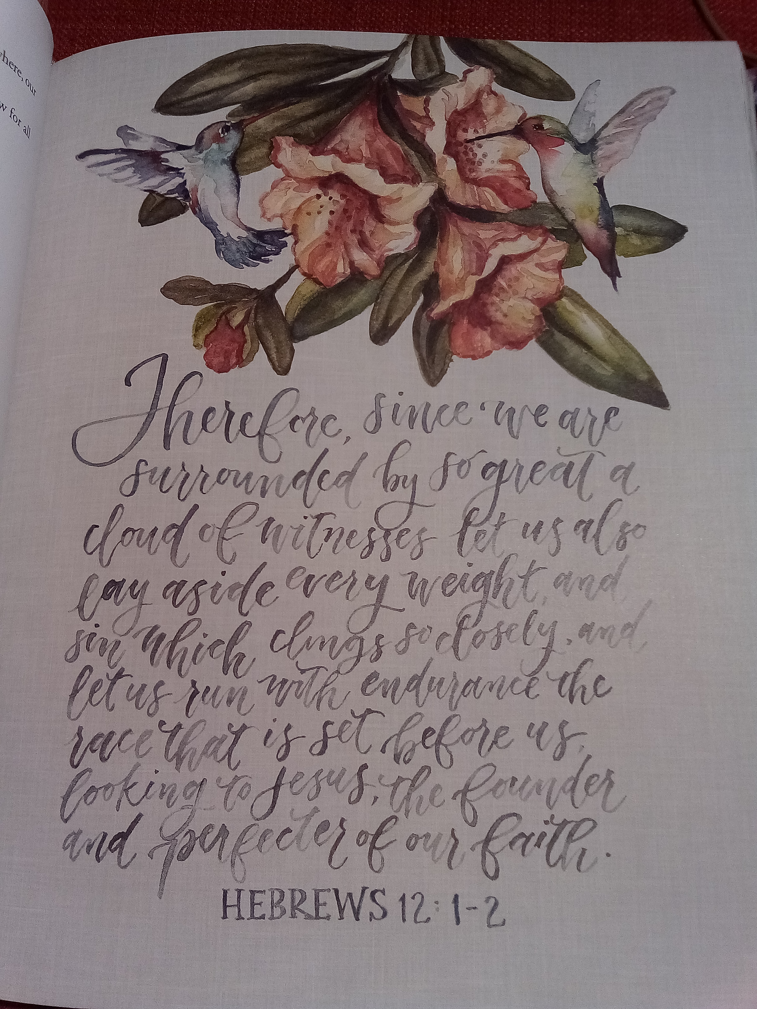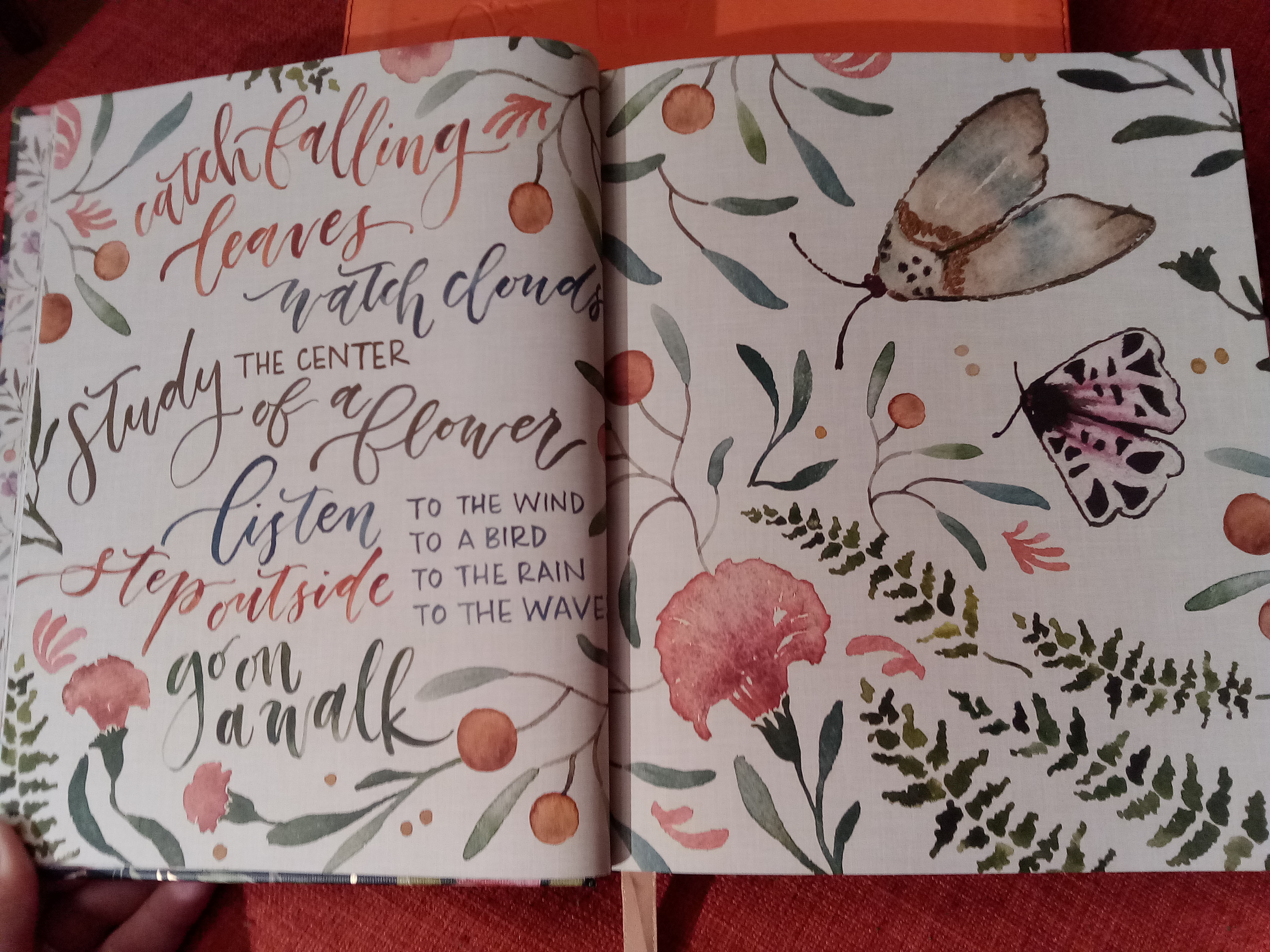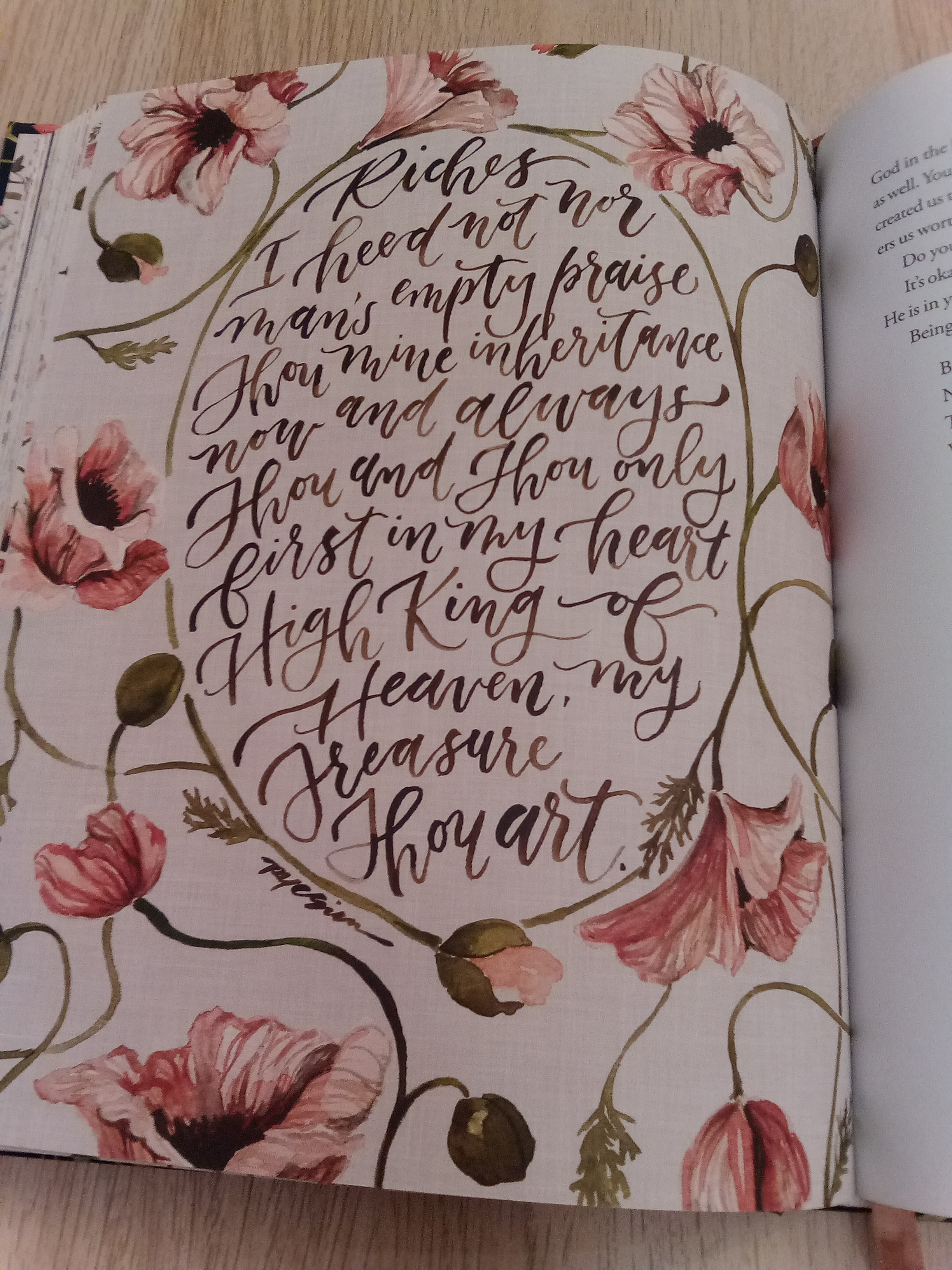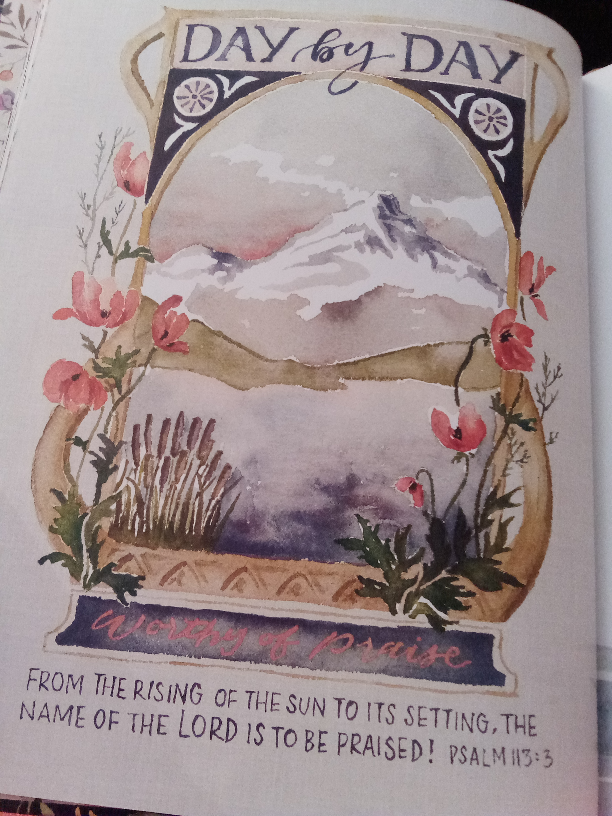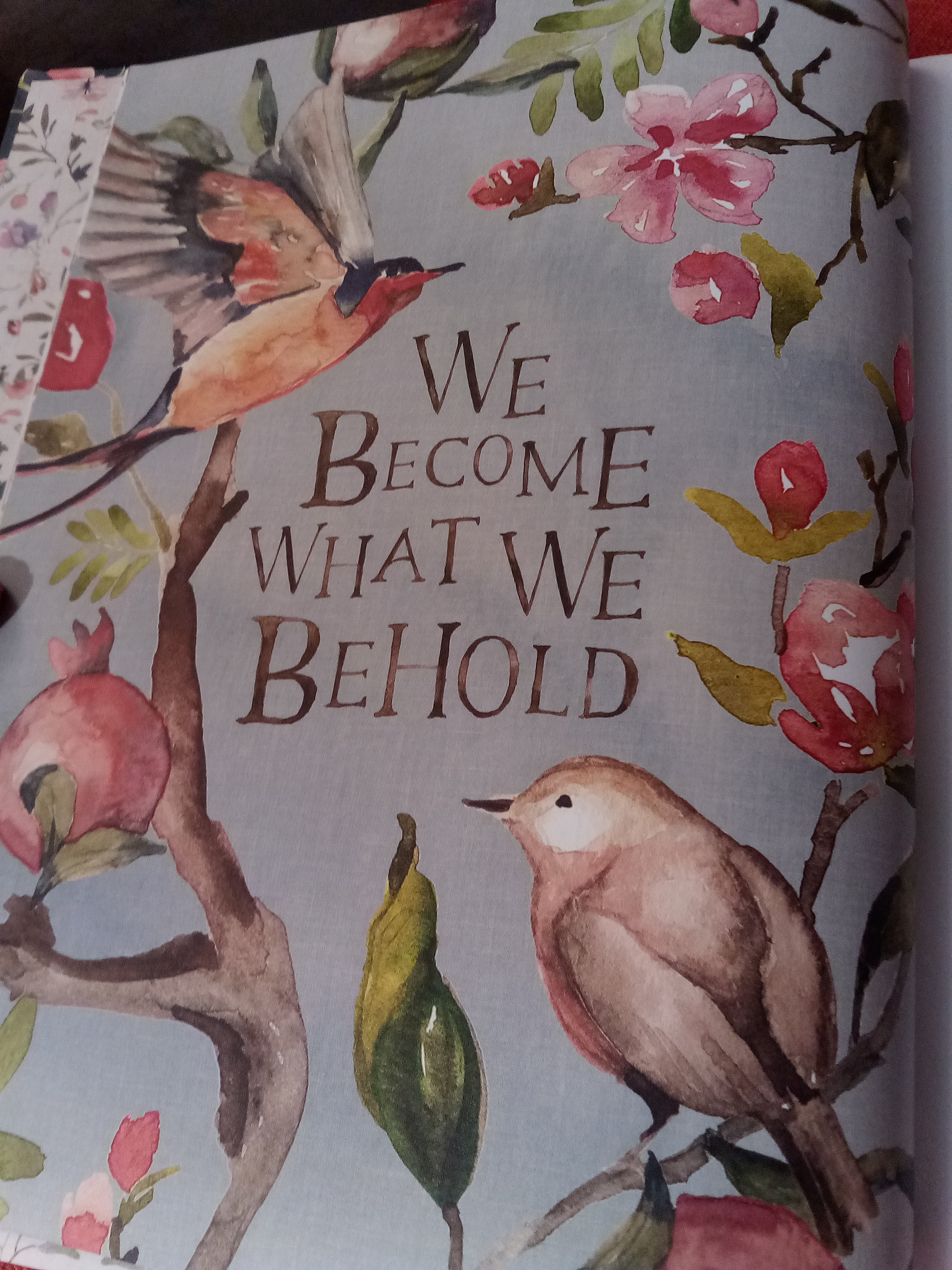 De aceea, mi-am dorit și am primit de ziua mea cartea ei Beholding and Becoming, care este tot un volum care îmbină meditațiile scrise cu pictura și caligrafia, iar, pentru mine, lectura câte unui capitol pe zi din această carte la acest început de an a fost un suflu de aer proaspăt, o oază de frumos, de lumină și de încurajare prin Scriptură, prin poezii, prin imnuri și imagini minunate. O să las câteva dintre ele să vorbească de la sine.