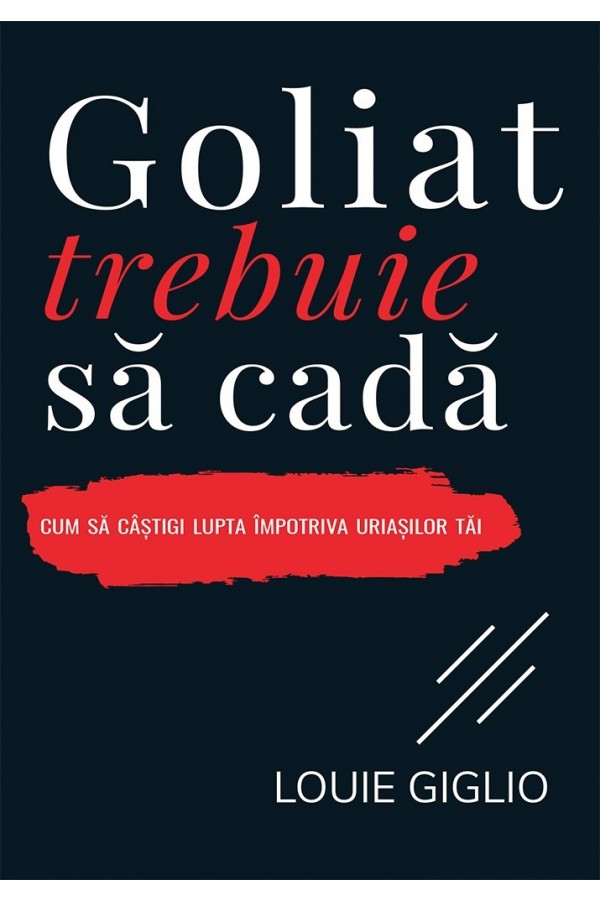 E foarte posibil ca fiecare dintre noi să avem câte un lucru care ne pândește din apropiere și ne fură bucuria; un obicei, o amintire sau un mod de gândire cu care ne-am obișnuit. Nu trebuie să fie neapărat alcoolismul sau anorexia sau depresia. Uriașii sunt de multe feluri, iar unii sunt foarte subtili, scrie Louie Giglio în introducerea cărții Goliat trebuie să cadă. Indiferent de câte ori te-ai zbătut înainte sau cât de sonoră este vocea care-ți spune că nu vei fi niciodată altfel decât ești acum, Dumnezeu îți comunică astăzi altceva. Poți trăi liber. Paginile care urmează nu sunt rodul unui optimism de tip „pară mălăiață”. Ceea ce ți se prezintă aici este o cale verificată în timp spre un mod de viață cu totul diferit. Știu lucrul acesta pentru că și eu am fost la fel ca tine. M-am confruntat și eu cu uriașii mei și am văzut puterea și tăria lui Dumnezeu care au depășit cu mult cele mai susținute eforturi ale mele, recunoaște Louie Giglio.