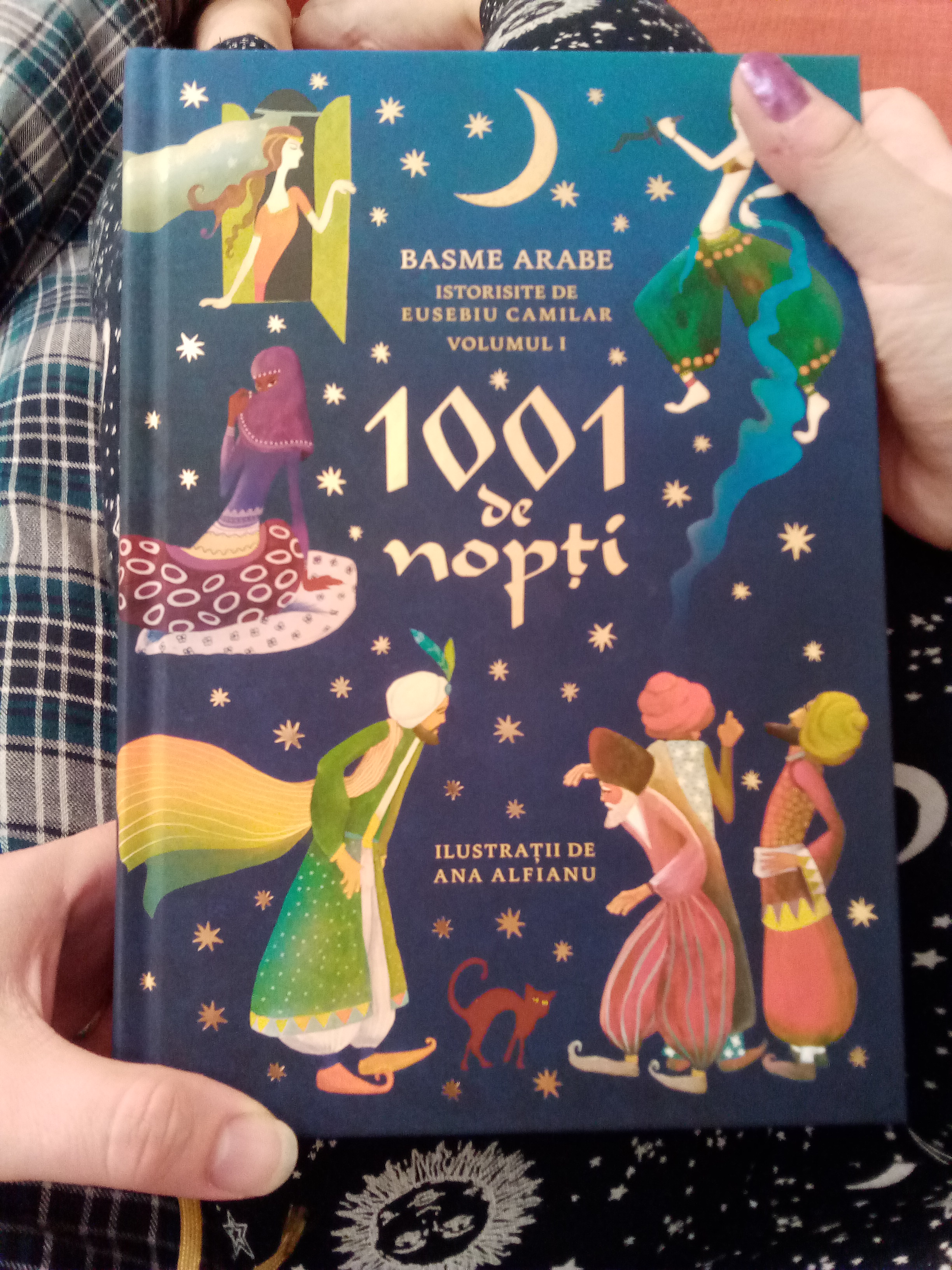 Mai întâi însă, o să vă spun despre una dintre cărțile neterminate de luna aceasta. Pe 1 februarie eu și soțul meu am început să citim 1001 de nopți – Basme arabe istorisite de Eusebiu Camilar – volumul 1, cu ilustrații de Ana Alfianu. Nu am reușit să citim în fiecare seară, așa că după o lună suntem la pagina 248/627, dar e foarte frumos să citești aceeași carte în același timp cu altcineva (aici mai multe despre lectura împărtășită). Ca impresii: momentan nu am ajuns la vreo poveste cunoscută, iar absolut toate sunt poveste-n-poveste-n-poveste-n-poveste-n-poveste etc, de uneori uiți de unde ai început și despre cine era vorba de fapt inițial; un motiv recurent este competiția de povești spuse de niște oameni condamnați la moarte – poveștile salvează vieți la propriu în lumea califilor iubitori de chefuit; iar limbajul plin de arhaisme și turcisme este un deliciu! Revin cu impresii despre conținut când îl vom termina.