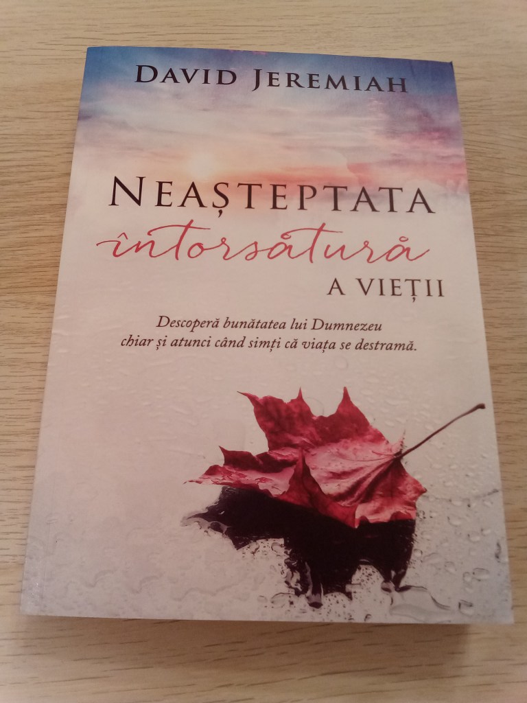 În continuare m-am mobilizat să citesc în trei zile stufoasa carte Neașteptata întorsătură a vieții de David Jeremiah, tot pentru emisiune. Din nou, una din cărțile care m-a cam dezamăgit. Mai mult un studiu asupra Psalmilor decât meditații asupra suferinței prilejuite de propria luptă cu cancerul, această carte are pe alocuri acel accent mai puțin plăcut asupra faptului că Dumnezeu trimite suferințele ca pedeapsă, disciplinare sau lecție și autorul consideră că asta este ceea ce îți poate da siguranță și încredere că va ieși ceva bun din ele. Perspectiva aceasta cam îngustă m-a deranjat.