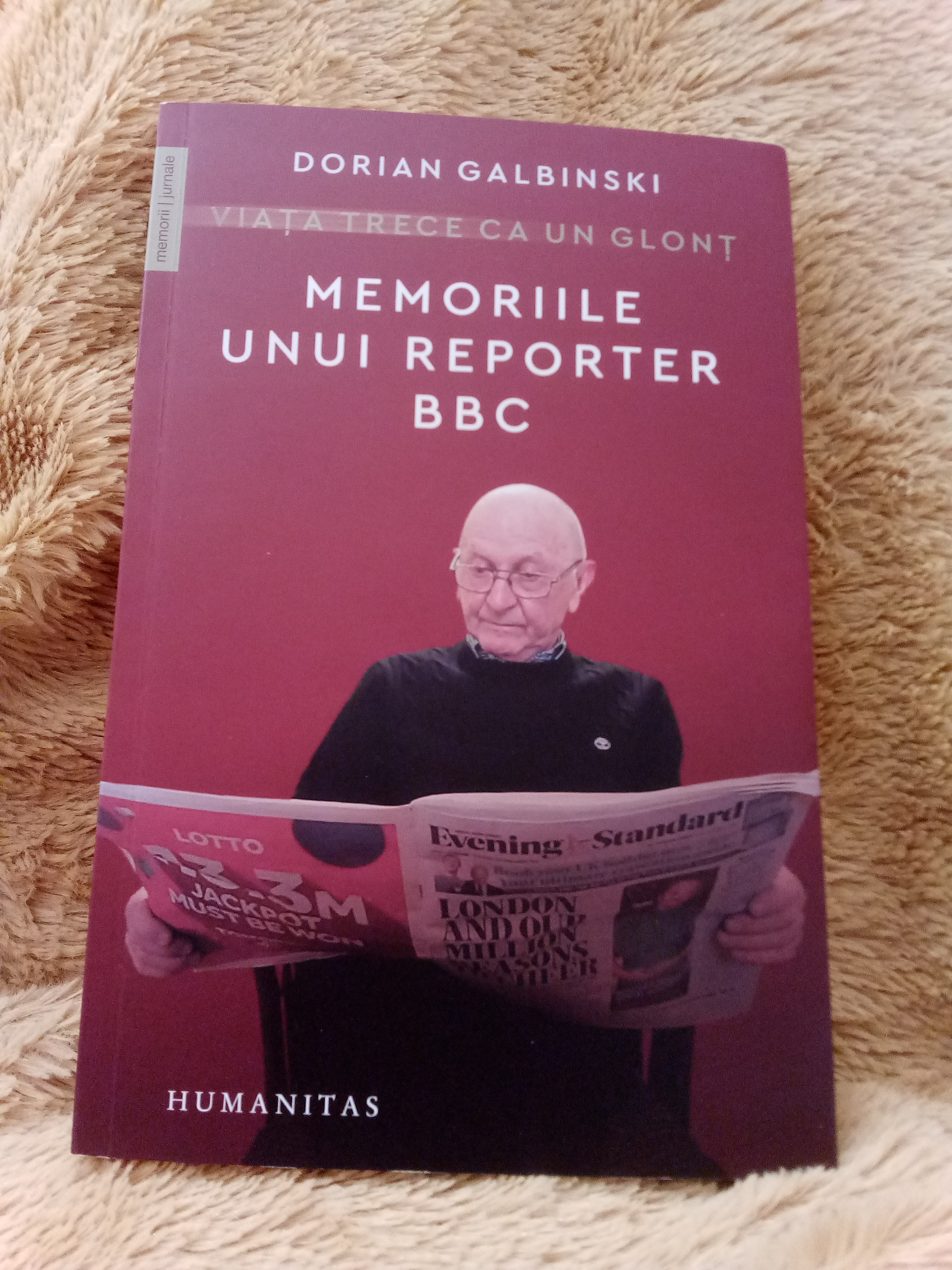 Deja n-o să vă surprindă că am văzut și lansarea acestei cărți și ea m-a convins că merită citită. Și-a cumpărat-o mama mea și am împrumutat-o de la ea și concluzia mea este că da, merită citită. Dorian Galbinski a fost timp de 38 de ani reporter la Londra la BBC World Service în secția de limba română, dar memoriile sale cuprind întreaga sa viață, începând cu copilăria la Constanța, tinerețea și stagiul militar în Israel, unde a și luptat în Războiul de Șase Zile din 1967 (el fiind evreu, a emigrat împreună cu familia în 1965). Primele trei părți mi s-au părut foarte interesante, are și mult umor deseori, dar spre final, după anii ’90 a început să mă plictisească și să-mi doresc să se termine.