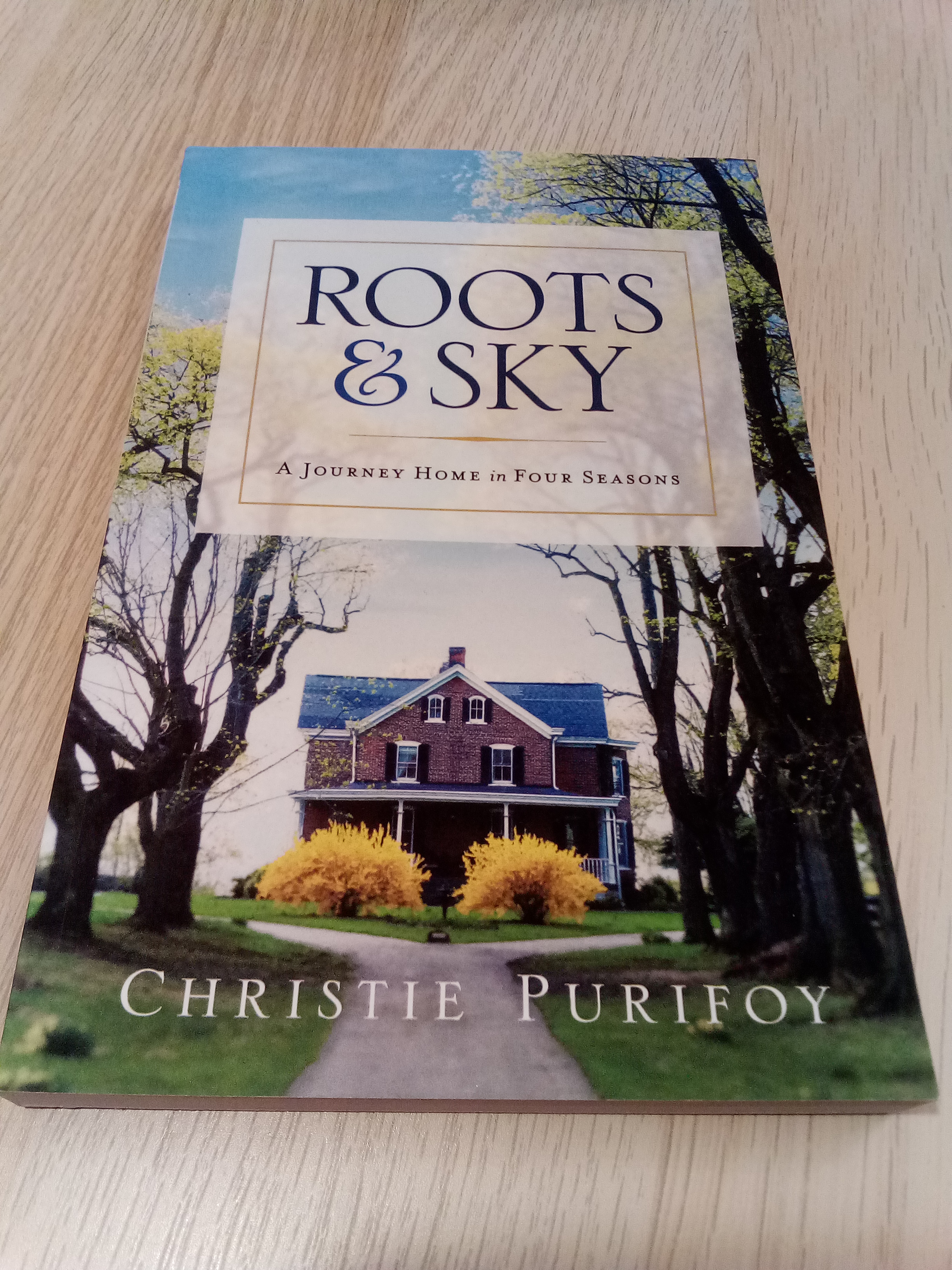 Am terminat apoi un volum început prin septembrie, Roots and Sky de Christie Purifoy, volumul ei de debut, un volum de eseuri organizate în jurul celor patru anotimpuri, mai exact al primului an petrecut la Maplehurst, o casă veche de 100 de ani în care abia se mutase împreună cu soțul și cei trei copii, și în care li s-a născut și al patrulea copil, Elsa Spring. Eseurile ei sunt foarte poetice, ancorate în schimbările naturii și în acomodarea în noua casă, noua zonă, noua comunitate. Însemnările ei încep toamna (de aceea am citit-o și eu acum) și se încheie în vara anului următor. Iată două mostre:
