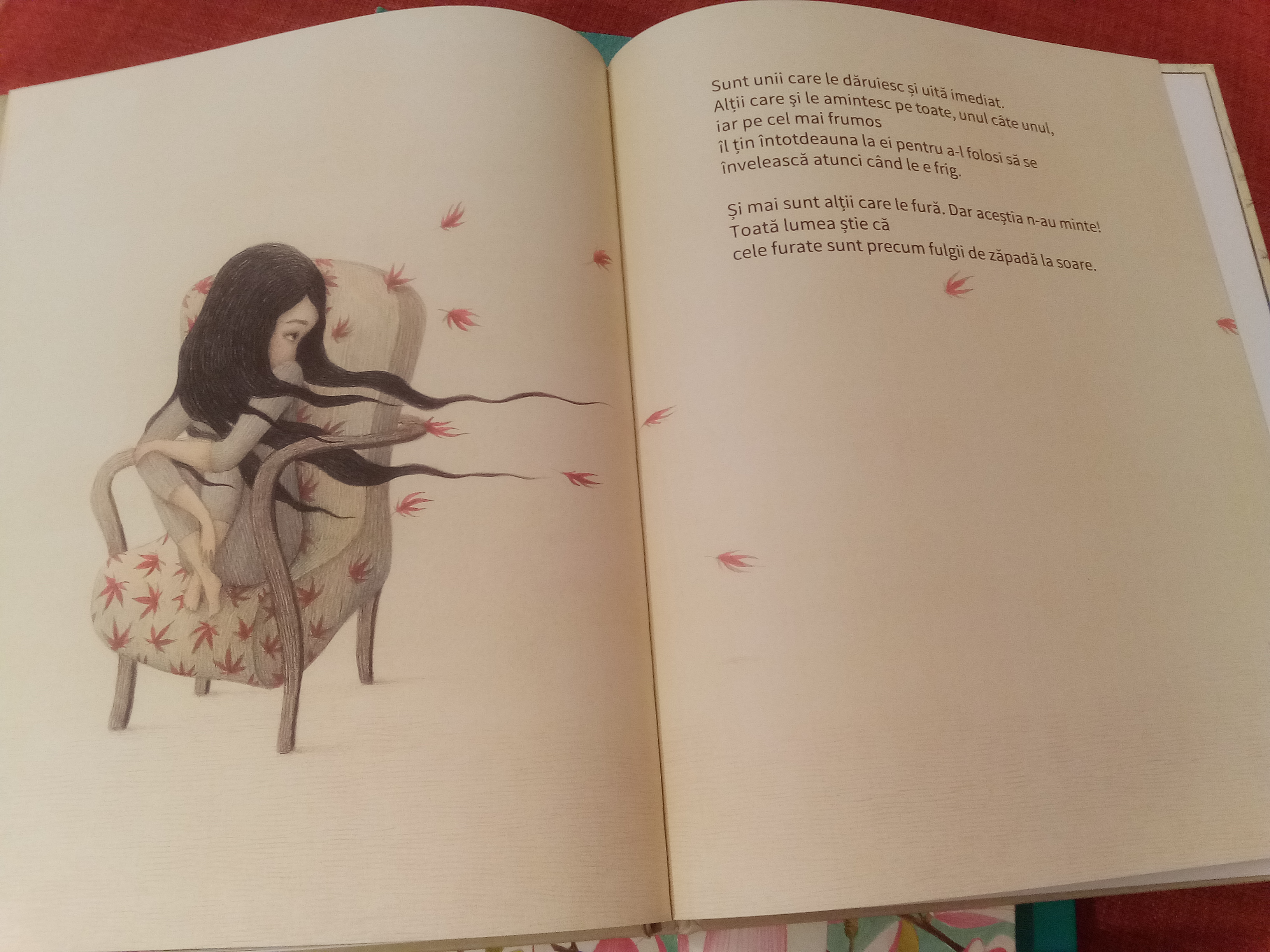 Mulțumesc, Miyuki! de Roxane Marie Galiez și Seng Soun Ratanavanh, pe care mărturisesc că am luat-o mai mult pentru mine, pentru că le avem și pe celelalte două cărți din serie, întrucât tema ei, meditația (deși nu se referă neapărat la tehnici, ci mai mult la atenția la tot ce ne înconjoară) nu m-a atras pentru Mihai.