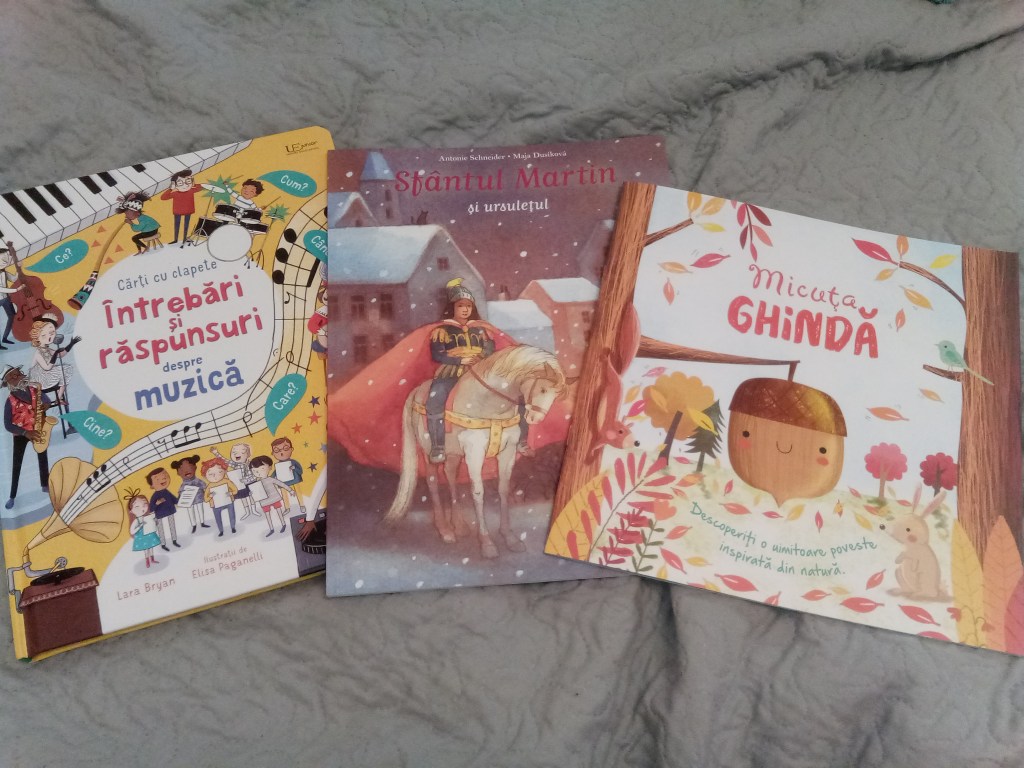 După aceea am mai făcut o comandă la Univers Enciclopedic Junior și am citit Micuța ghindă de Melanie Joyce și Gina Maldonado (care este adorabilă!) și Sfântul Martin și ursulețul de Antonie Schneider și Maja Dusíková (care m-am gândit că ar fi bună de Advent, dar văd că acest Sfânt se cinstește pe 11 noiembrie și după ce am citit-o mi-am dat seama că ar fi perfectă pentru ceea ce încerc să-l învăț pe Mihai în perioada asta – să împartă din ce are).