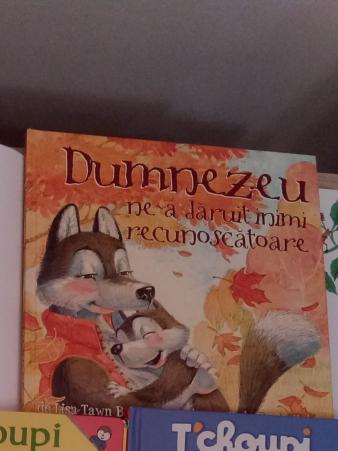 Între timp, i-am mai citit lui Mihai o carte, Dumnezeu ne-a dăruit inimi recunoscătoare de Lisa Tawn Bergren și David Hohn, care, deși drăguță, nu mi-a plăcut pentru faptul că a ales ca personaje animale într-o carte pe această temă (spirituală, care îl menționează pe Dumnezeu), și dintre toate animalele, tocmai lupi! Pe bune?!