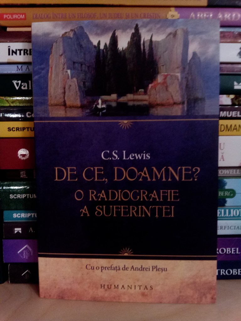 De ce, Doamne? O radiografie a suferinței este un volum extrem de personal, este de fapt jurnalul pe care l-a ținut C.S. Lewis în urma morții soției sale din cauza cancerului. Este un volum care se citește pe nerăsuflate, în ciuda subiectului sensibil și este minunat modul în care putem observa tranziția de la disperarea de la început la calmul din finalul cărții. M-am bucurat că le-am citit una după alta, pentru a putea vedea contrastul dintre prezentarea detașată din argumentația filosofică și descrierea experienței personale a suferinței. În propria suferință, C.S. Lewis nu mai aude niciun „megafon”, ba chiar simte că i s-a închis ușa în nas și s-a și încuiat cu cheia. Cel puțin la început. Mai multe nu vă mai spun, decât că trebuie să ascultați episodul dedicat acestor cărți, care va apărea în câteva săptămâni.