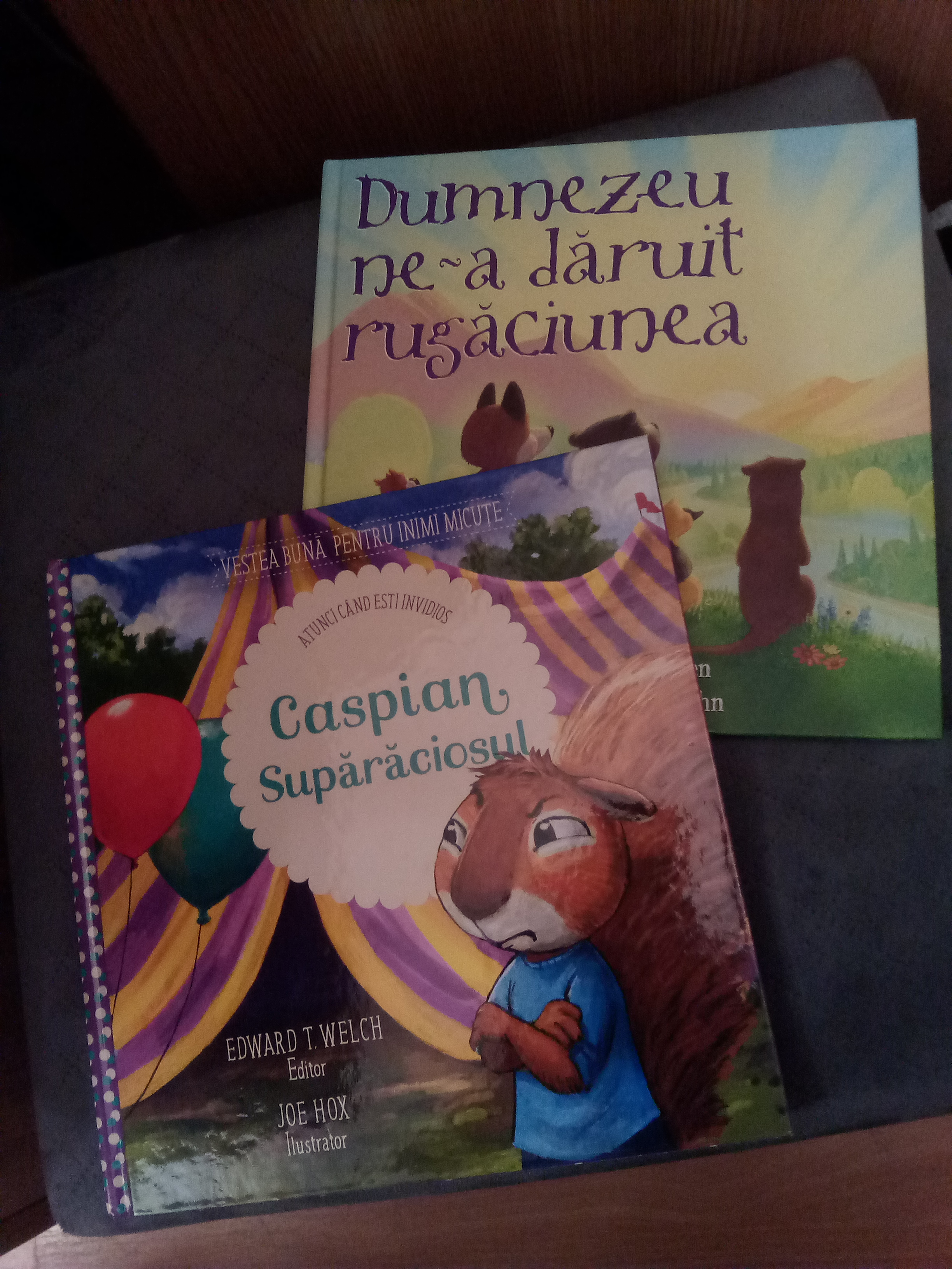 M-am bucurat mult să le văd traduse în limba română, pentru că le aveam de mult timp pe wishlist, de când aflasem de ele de pe blogul lui Ann Voskamp. Sunt cărți cu rimă, pe care însă nu i le-am citit decât o dată lui Mihai, fix în ziua când au sosit. Mi-ar fi plăcut să le fi avut mai de mult pentru el, dar chiar și așa, poate mai revine singur la ele și le mai răsfoiește. Mie mi-a plăcut mai mult cea despre creație, și ca poezie, și ca ilustrații. La cea „verde” mi-ar fi plăcut să alterneze copiii de pe pagini și să fie și băieți. Cartea prezintă o singură fetiță, pe cea de pe copertă și, deși adresarea este directă, către cititor, ca băiat e greu să te identifici văzând-o doar pe acea fetiță pe fiecare pagină.