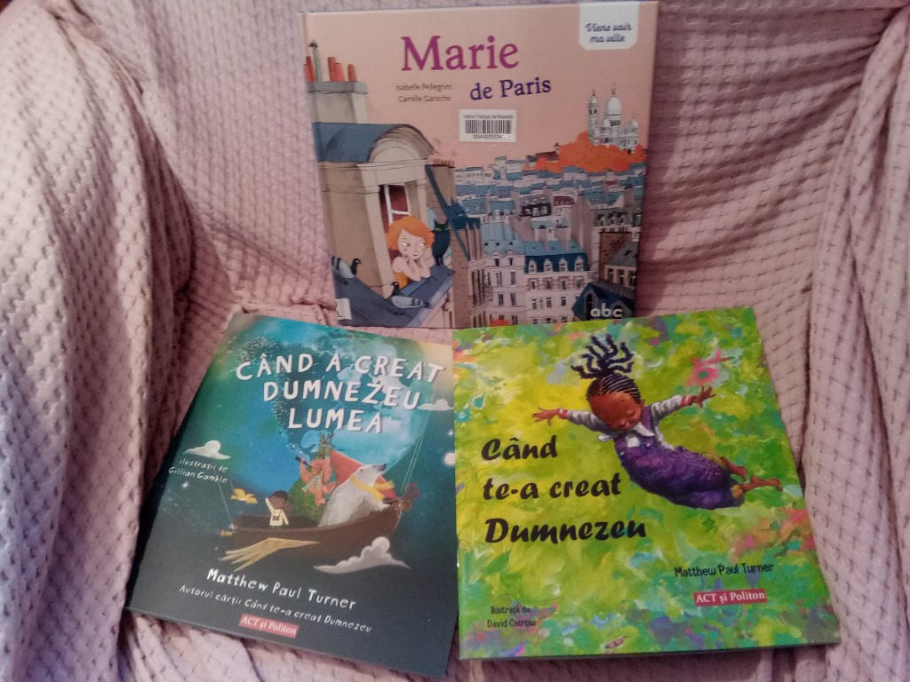 Apoi am citit și Marie de Paris de Isabelle Pellegrini și Françoise Sabatier-Morel, cu care am încheiat cărțile de la Institut și nou-sositele cărți de Matthew Paul Turner, Când a creat Dumnezeu lumea (ilustrată de Gillian Gamble) și Când te-a creat Dumnezeu (ilustrată de David Catrow).