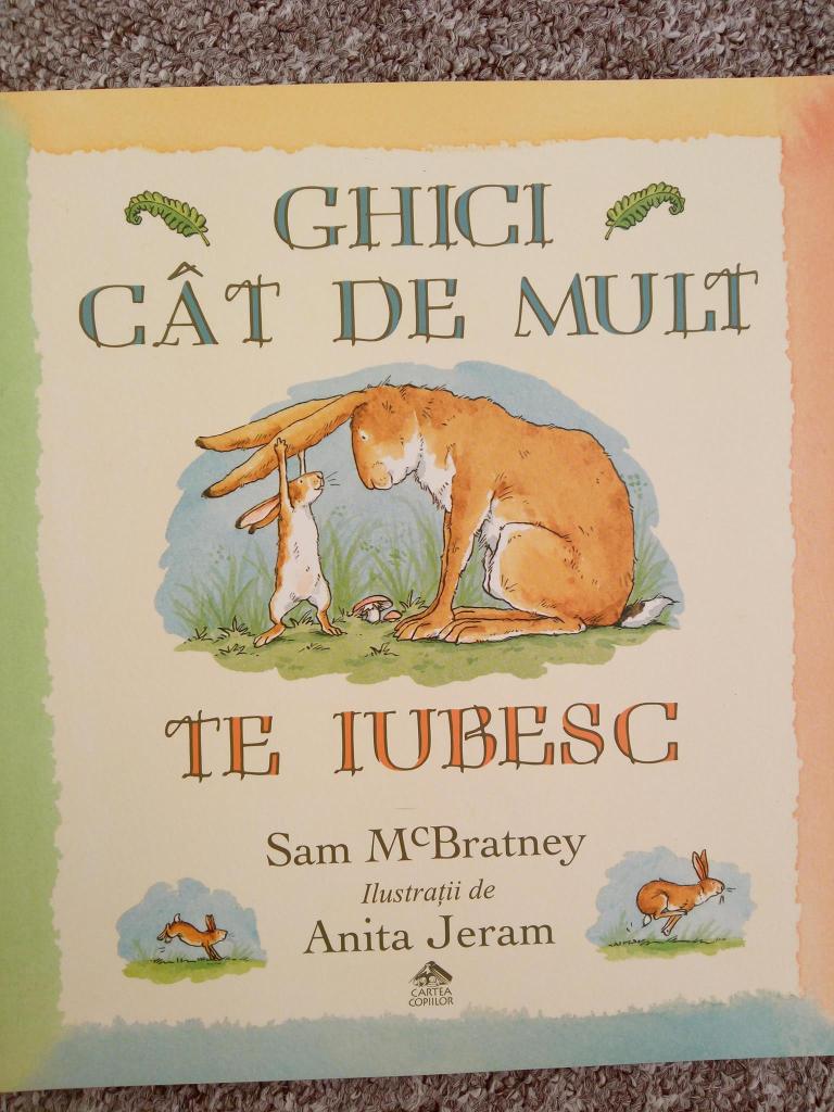 Ghici cât de mult te iubesc de Sam McBratney și Anita Jeram – Una dintre primele cărți pe care i le-am citit lui Mihai, dar niciodată în română, pentru că am avut-o în limba engleză, este această carte clasică despre iubirea părintelui față de copil, un mesaj pe care fiecare copil trebuie să-l audă. Ce e frumos la această carte, pe lângă ilustrații și întrecerea părintelui și a copilului în a-și exprima iubirea unul față de celălalt, este faptul că figura părintească poate fi atât mama, cât și tata, deci ambii părinți se pot identifica și îi pot citi această carte copilului, spre deosebire de multele cărți în care apare doar figura mamei.