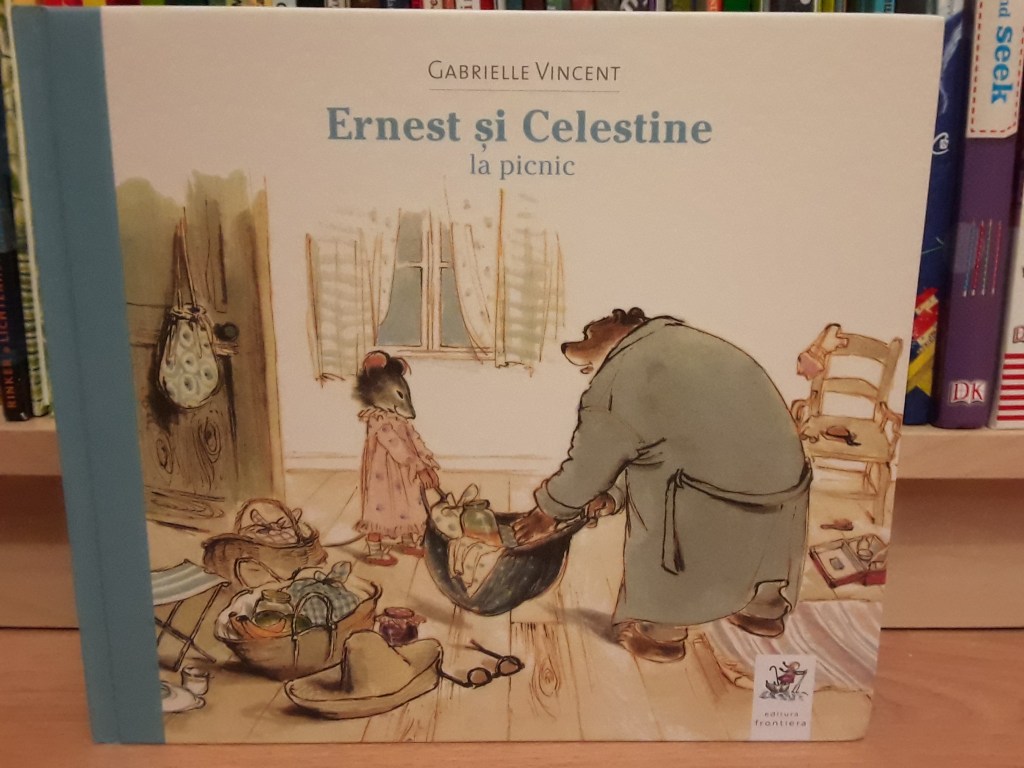 Seria Ernest și Celestine de Gabrielle Vincent – Da, știu, aici trișez un pic, dar mi-e imposibil să aleg un singur titlu, pentru că toate sunt adorabile! Dacă l-aș întreba pe Mihai, probabil că prima pe care ar alege-o ar fi Ernest și Celestine la picnic, pentru că personajele se hotărăsc să nege realitatea unei zile ploioase care i-ar impiedica să plece la picnic și se țin de planul lor, organizând un adevărat festin.