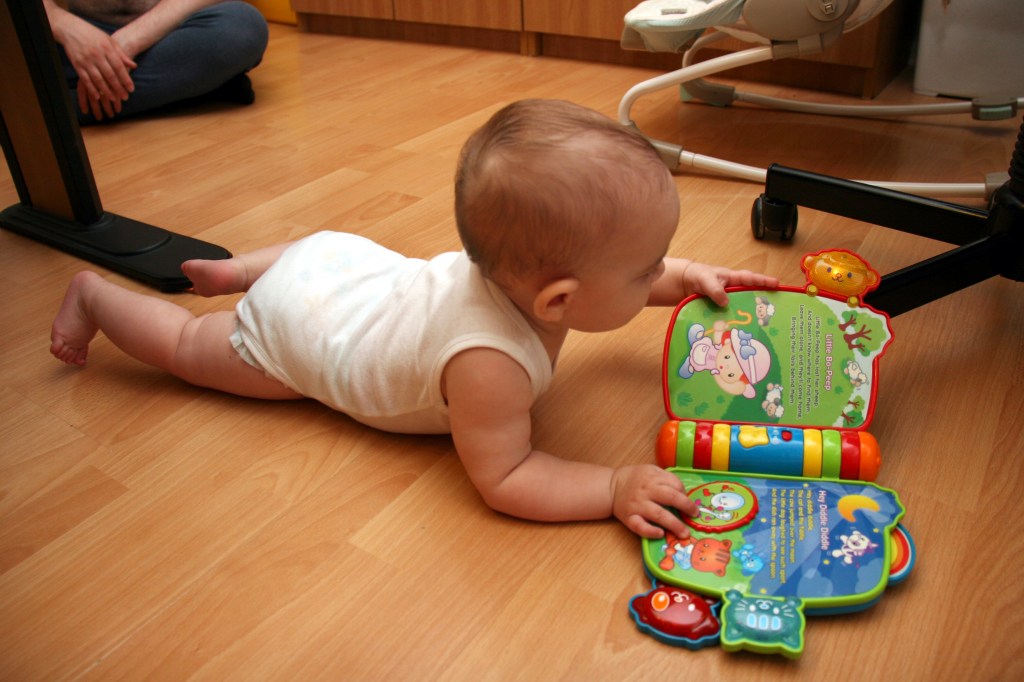Acum există în limba română și/sau în România mult mai multe cărți dedicate bebelușilor decât erau pe vremea când s-a născut Mihai. Cu toate acestea, am avut și noi câteva cărți textile foarte frumoase pe care le-a tot molfăit și zmotocit, precum și una muzicală din plastic pe care îi plăcea să o „activeze”.