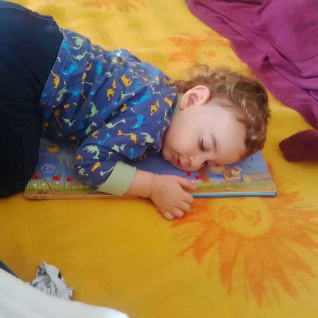 De pe la 1 an și jumătate am adăugat în repertoriul nostru cărțile muzicale, care îi plac până în ziua de azi. Prima pe care a avut-o a fost una cu cântece de leagăn de la Usborne, pe care i-a luat-o Nana (mama mea), pe care și-o punea deseori să cânte până adormea la prânz.