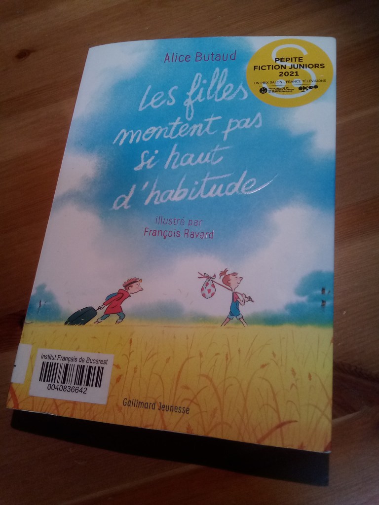 Am citit apoi un roman pentru copii împrumutat de la Institutul francez, Les filles montent pas si haut d’habitude de Alice Butaud și François Ravard, un roman foarte drăguț despre un băiat singuratic ce trăiește doar cu tatăl lui și e pasionat de cuvinte și de scris și o fată foarte aventuroasă, care îl scoate din bula lui și-i schimbă complet viața.