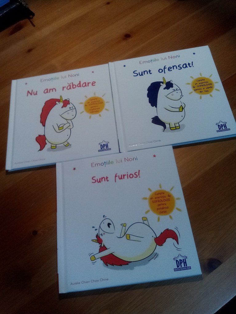 Influențată de vreo două mame de pe Instagram (@biblioteca_dacianei și @sunnysideup), am comandat trei cărți din seria Emoțiile lui Noni de Aurellie Chien Chow Chine: Nu am răbdare!, Sunt furios și Sunt ofensat.