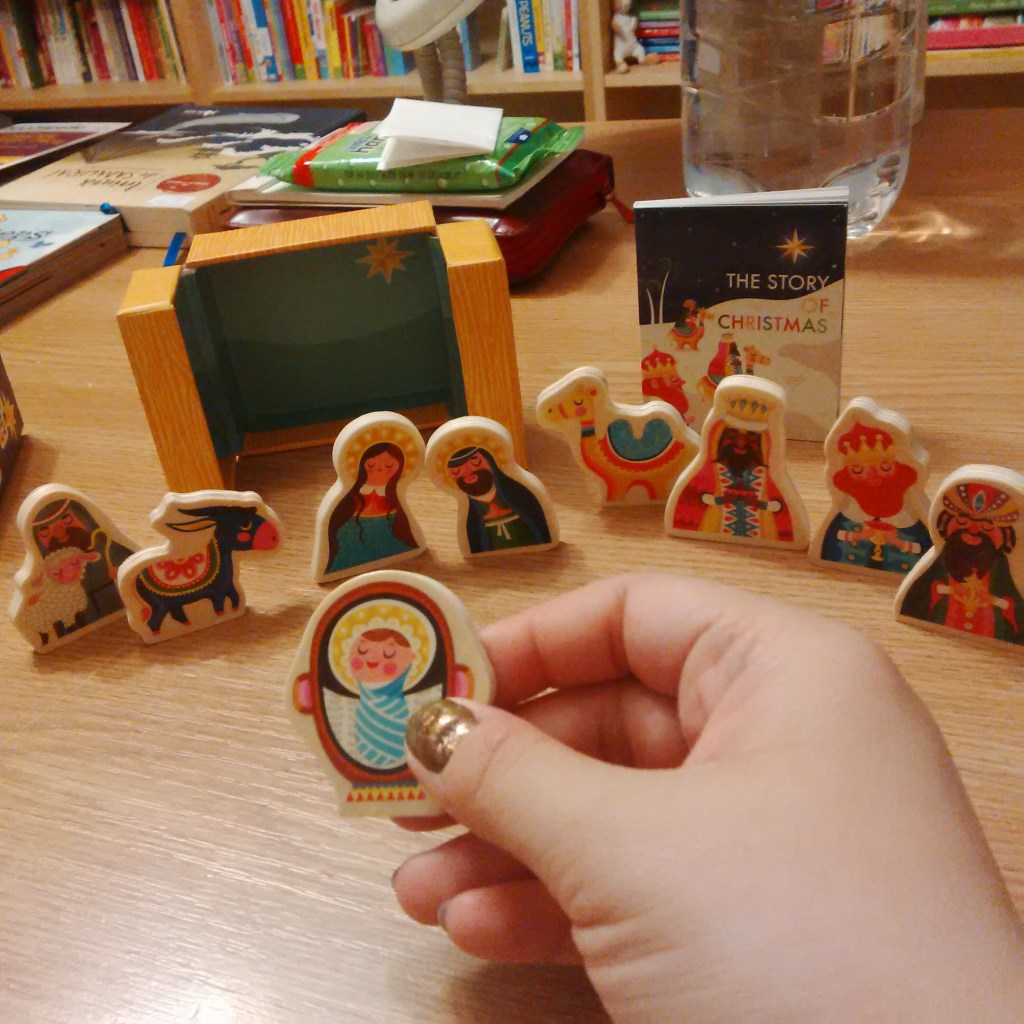 Teeny-Tiny Nativity – Aceasta este una dintre preferatele mele! Este de fapt un set cu figurine din lemn ce reprezintă scena Nașterii, însoțită de o mini-cărticică. Eu am luat acest set pentru a-l ține pe Mihai ocupat în timpul slujbelor de la biserică și cred că este varianta perfectă de scenă a Nașterii la purtător, dar și acasă, mai ales dacă nu ai mult loc.