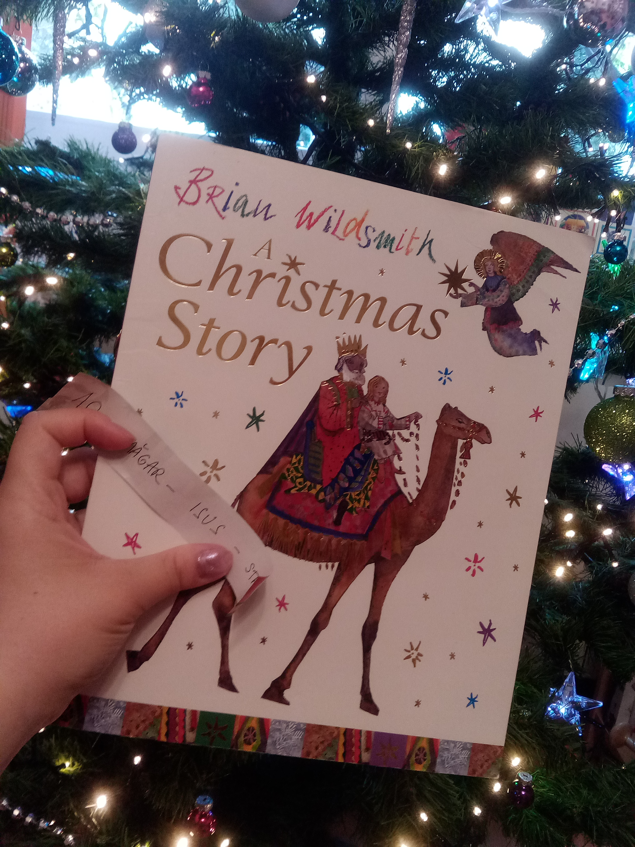A Christmas Story de Brian Wildsmith – O altă bijuterie găsită la Bookoteca, această carte spune povestea Nașterii din perspectiva unei fetițe căreia îi fusese lăsat în grijă mânzul măgăriței pe care a călărit Maria. Fetița pleacă împreună cu mânzul în căutarea măgăriței și a Mariei și este astfel martora nașterii lui Isus. Ce o face deosebită este concepția grafică, cartea fiind presărată cu elemente evidențiate cu auriu.
