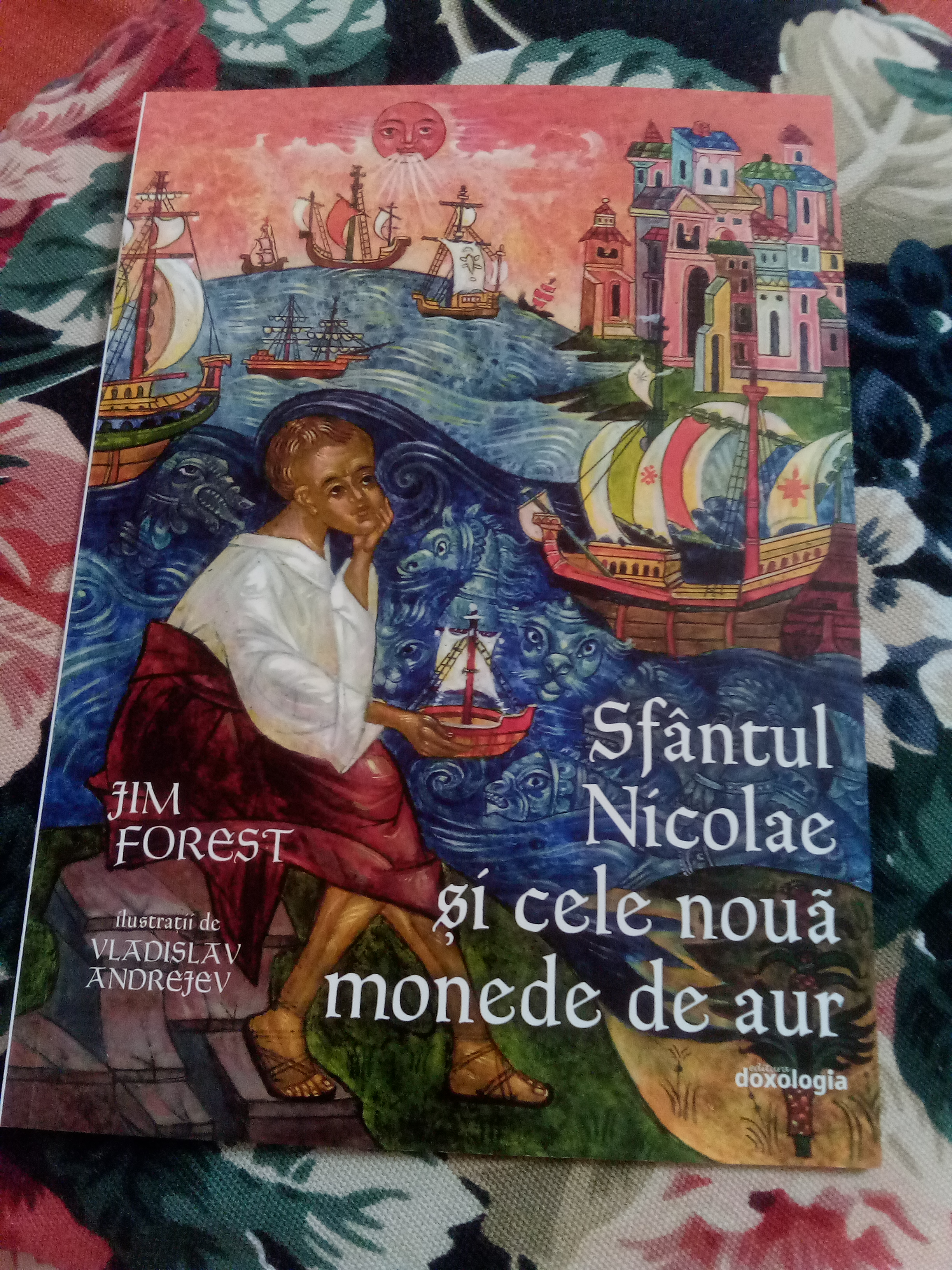 De Moș Nicolae (de care nu scăpăm din cauza școlii) intenționez să pun accentul pe persoana istorică a Sfântului Nicolae care a inspirat acest obicei (și, de altfel, figura lui Moș Crăciun). În acest sens am cumpărat cartea Sfântul Nicolae și cele nouă monede de aur de Jim Forest, cu ilustrații de Vladislav Andrejev, pe care plănuiesc să i-o dau pe 6 decembrie împreună cu o acadea de ciocolată cu Sf. Nicolae de la Leonidas și o ramă cu o planșă mică despre Sf. Nicolae, descărcată de pe littlewaychapel.com.