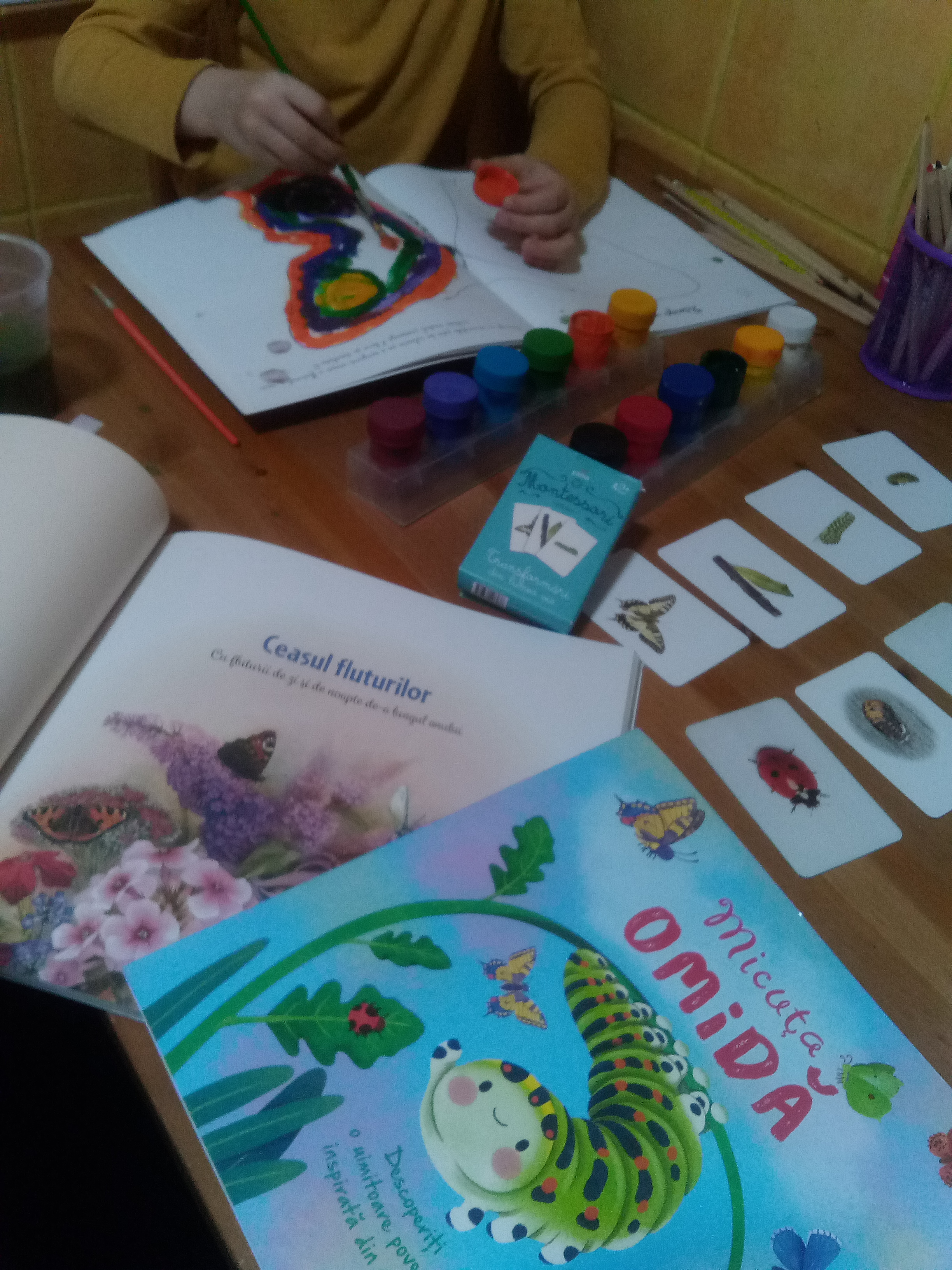 Am citit apoi într-o după-amiază Micuța omidă de Suzanne Fossey și Gisela Bohórquez, în timp ce făceam niște activități despre cicluri de viață.