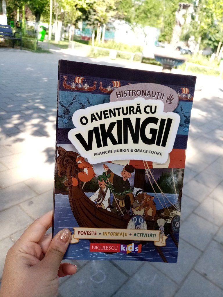 După aceea, n-am reușit să-l scot pe Mihai afară într-o zi până nu i-am promis că citim acolo o nouă carte din seria Histronauții: O aventură cu vikingii de Frances Durkin și Grace Cooke (pe care o citise deja și singur, să ne-nțelegem, dar a insistat să i-o citesc și eu!).