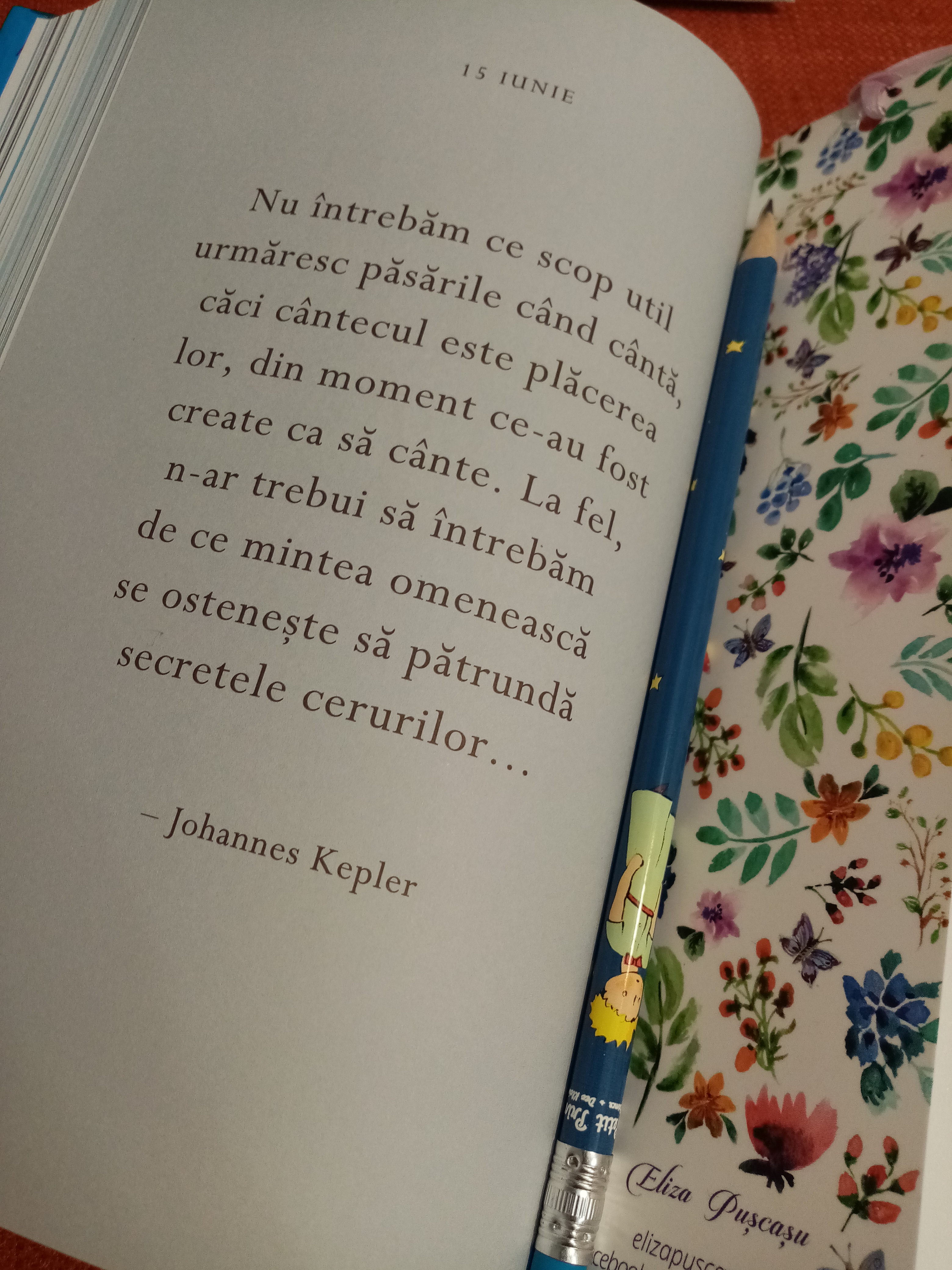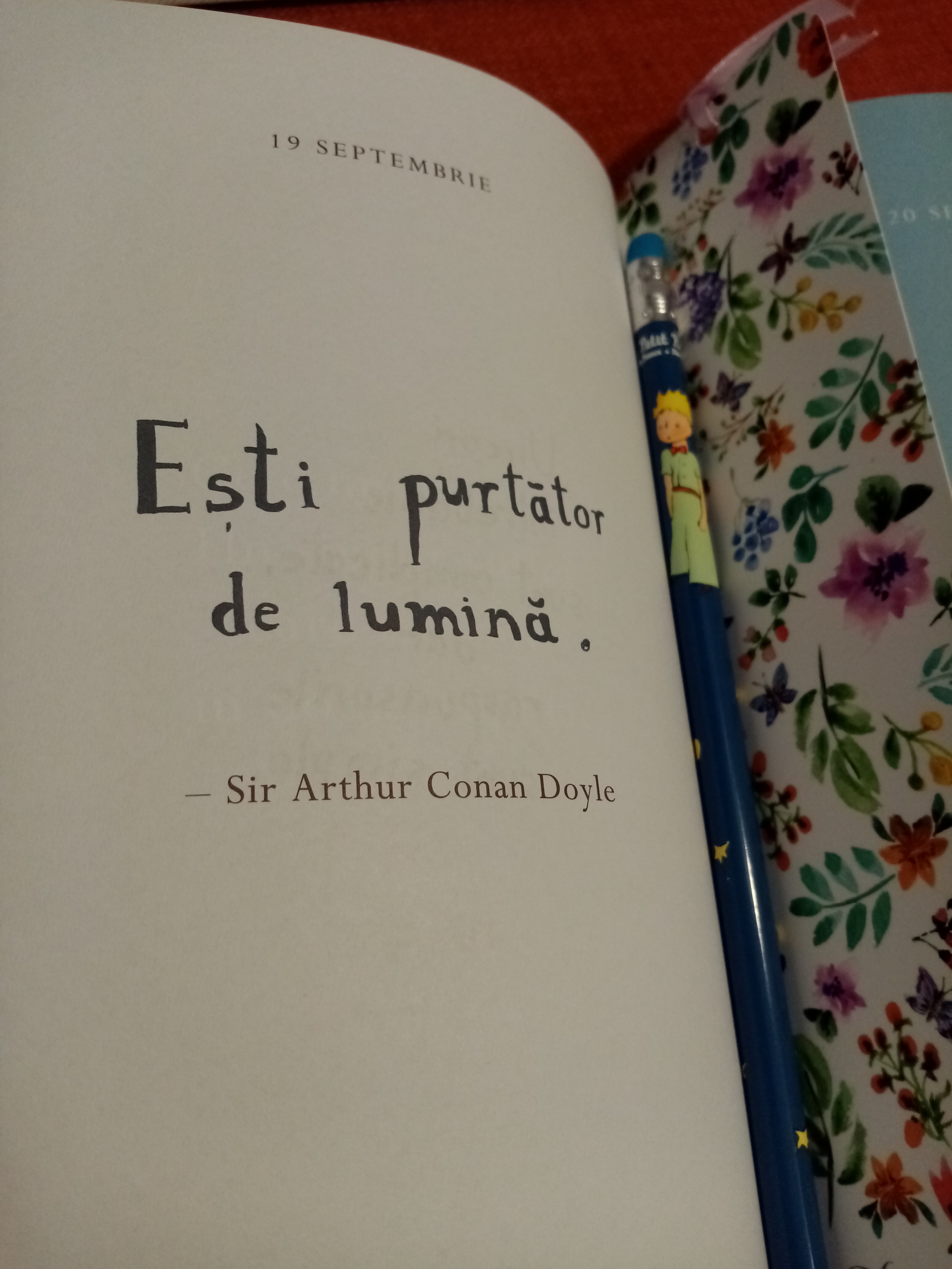M-am bucurat de ea și acum, pentru că am regăsit multe citate frumoase pe care le știam, dar am descoperit și unele noi, și cred că ar fi un cadou perfect pentru copiii de gimnaziu și adolescenți, pentru că, pe lângă citatele propriu-zise, există în fiecare lună câte un text mai elaborat în care sunt povestite niște situații de viață care ilustrează vreunul dintre „precepte”.