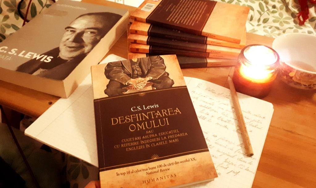 Noi am mai prezentat cartea Desființarea omului pe blogul nostru. Într-o toamnă foarte „lewisiană” (de fapt, eu asociez cărțile lui Lewis cu toamna, probabil și pentru că aniversarea lui este în luna noiembrie), am fost pasionată să citesc cam tot ce rămăsese necitit din opera lui Lewis, chiar și lucrările care nu erau încă traduse în limba română (sau nu fuseseră reeditate, pentru că, în cazul Desființării omului, aceasta mai fusese tradusă demult tot la editura Humanitas). De aceea, găsiți pe blogul nostru, carteaeoviata.com, cu tag-ul C.S. Lewis, următoarele: The Abolition of Man (titlul în original), The Weight of Glory, o carte de predici și cuvântări, God in the Dock, o altă carte de eseuri pe teme teologice și etice, Till We Have Faces, poate cea mai reușită lucrare imaginativă a lui Lewis, o repovestire a unui mit grecesc, The Pilgrim’s Regress, care redă călătoria sa intelectuală într-un stil tipic Călătoriei Creștinului, a lui John Bunyan, și, nu în ultimul rând, Trilogia Spațială.