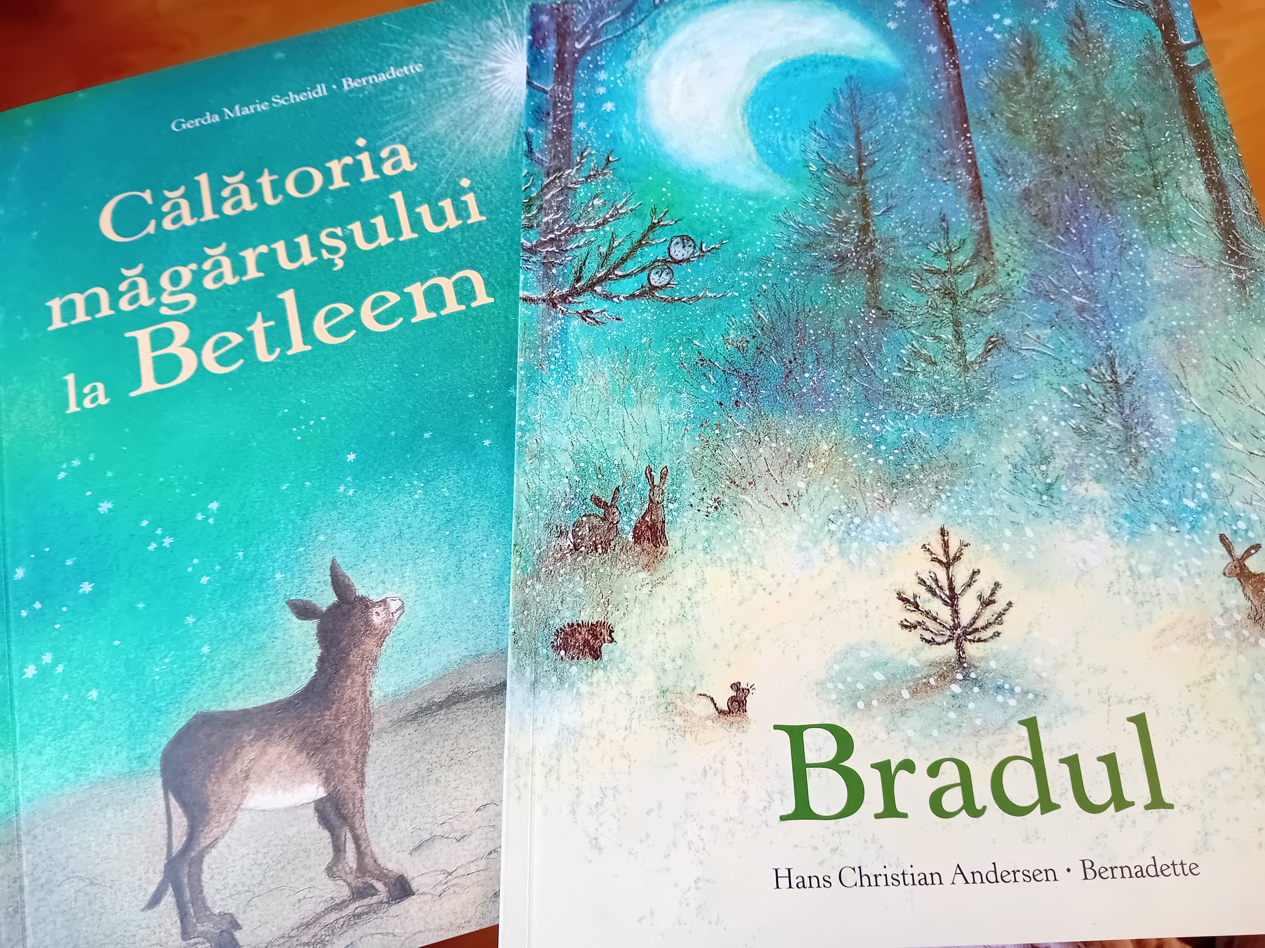 Am citit apoi două cărți comandate pentru Crăciun: Bradul de Hans Christian Andersen, ilustrată de Bernadette Watts și Călătoria măgărușului la Betleem de Gerda Marie Scheidl, ilustrată de aceeași Bernadette Watts, ilustratoare care cred că a devenit una dintre preferatele mele și motivul pentru care voi mai lua niște cărticele doar pentru că ilustrațiile ei sunt minunate.