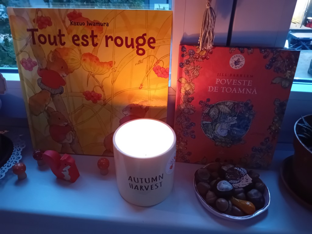Cele două cărți tomnatice pentru copii pe care le-am citit luna asta au fost Poveste de toamnă din seria Desișul de Muri de Jill Barklem și Tout est rouge de Kazuo Iwamura (care a scris și seria cu Familia Șoricel).