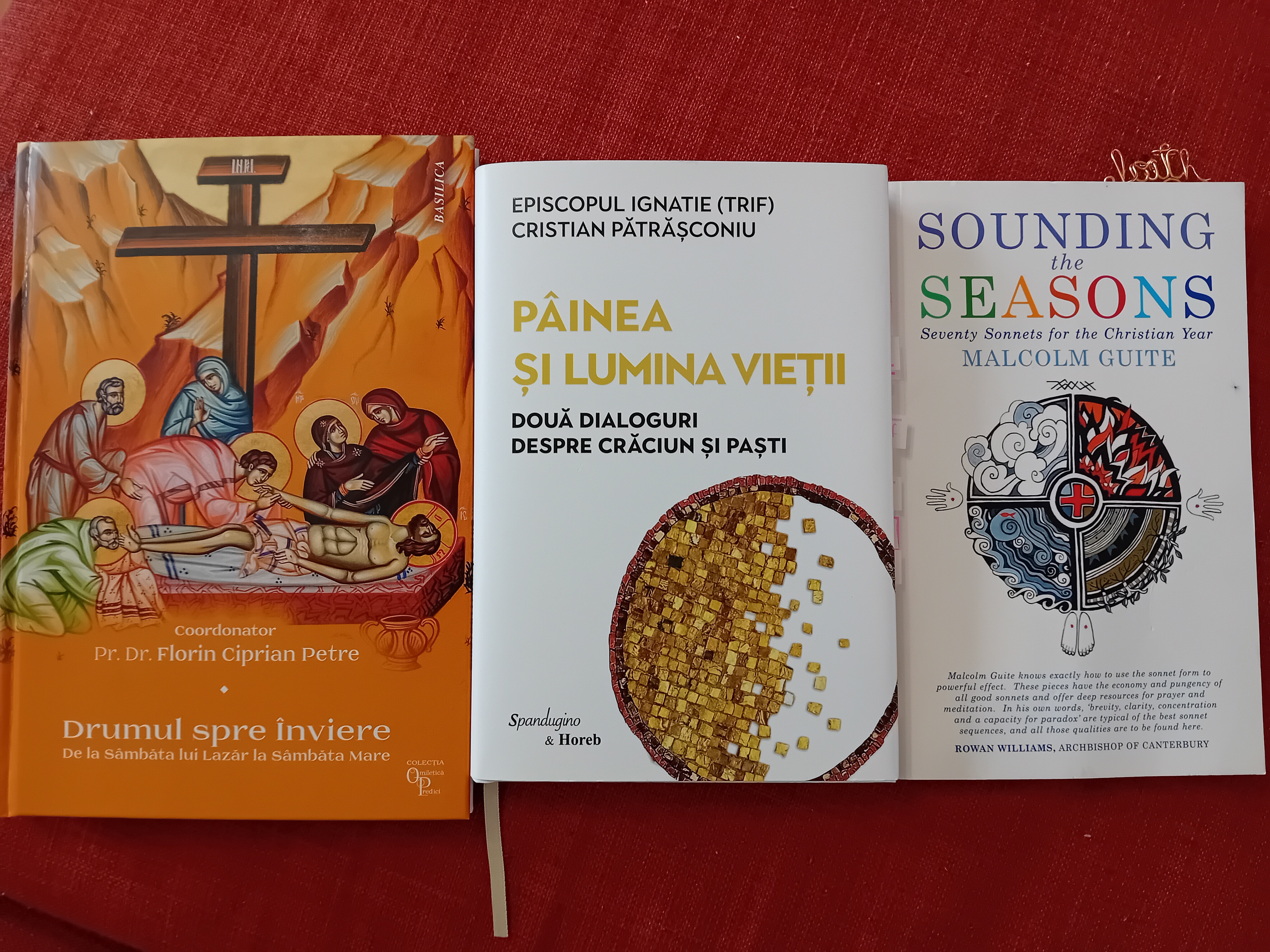 Drumul spre Înviere – De la Sâmbăta lui Lazăr la Sâmbăta Mare (coord. de Pr. Dr. Florin Ciprian Petre) cuprinde câte un dialog pentru fiecare dintre aceste zile cu Părintele Bogdan Tătaru-Cazaban (cel despre Sâmbăta lui Lazăr) și cu Preasfințitul Părinte Damaschin Dorneanul (restul), în care aceștia discută pe larg simbolistica, teologia și pedagogia evenimentelor biblice comemorate în aceste zile. Mi-a plăcut să am în fiecare zi a Săptămânii Mari ceva specific de citit și ceva inedit la care să meditez. V-o recomand cu căldură!