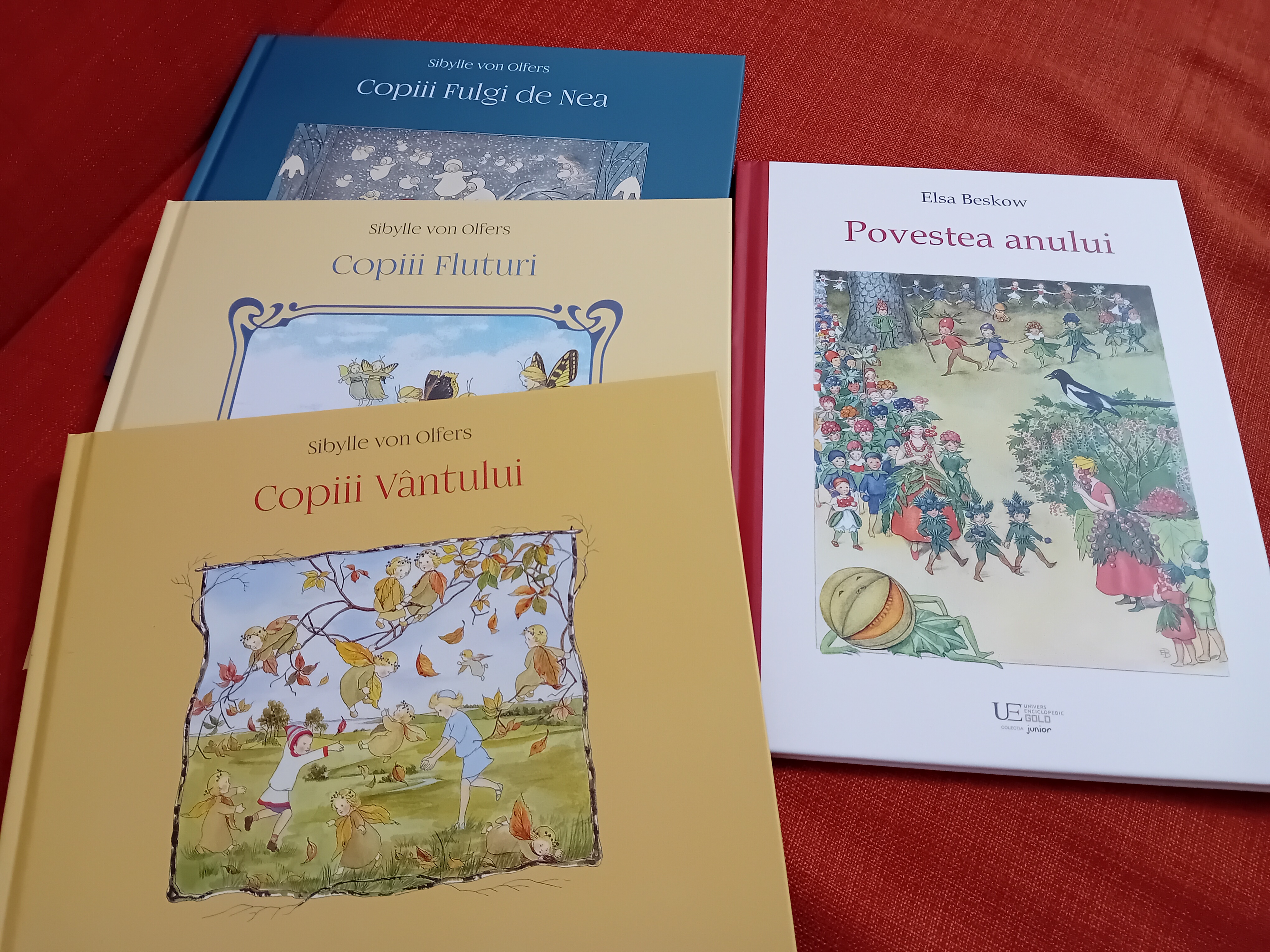 Apoi a sosit un colet cu noutățile de la Editura Univers Enciclopedic scrise de Sibylle von Olfers – Copiii Fluturi, Copiii Vântului (mai de toamnă), Copiii Fulg de Nea și Povestea anului de Elsa Beskow (care mi-a plăcut cel mai mult!).