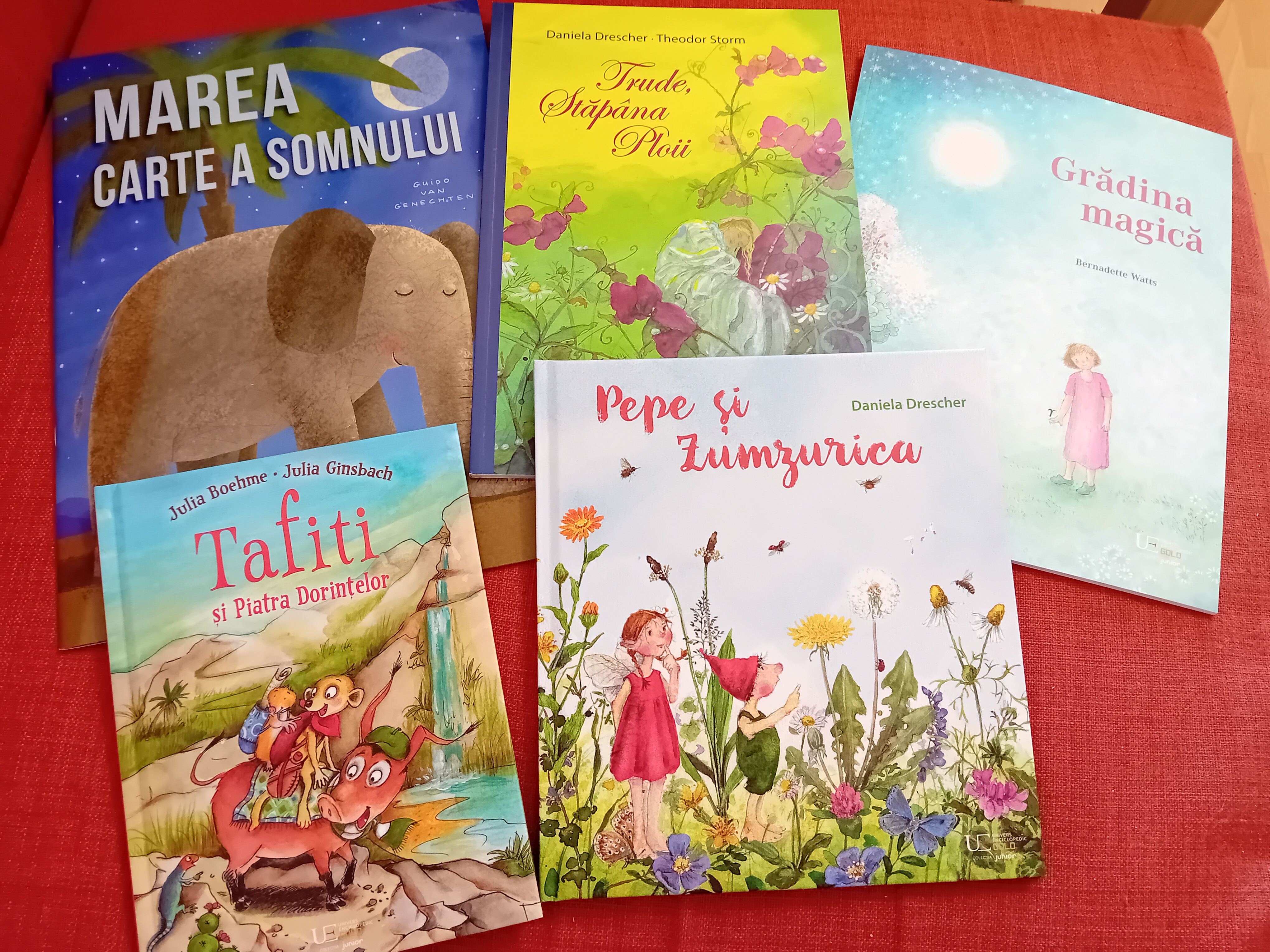 Pepe și Zumzurica este un volumaș destul de consistent, cartonat, despre plante medicinale, iar Trude, Stăpâna Ploii, un basm repovestit după Thomas Storm, a venit chiar la fix în ziua în care în sfârșit a plouat după multe zile de caniculă.