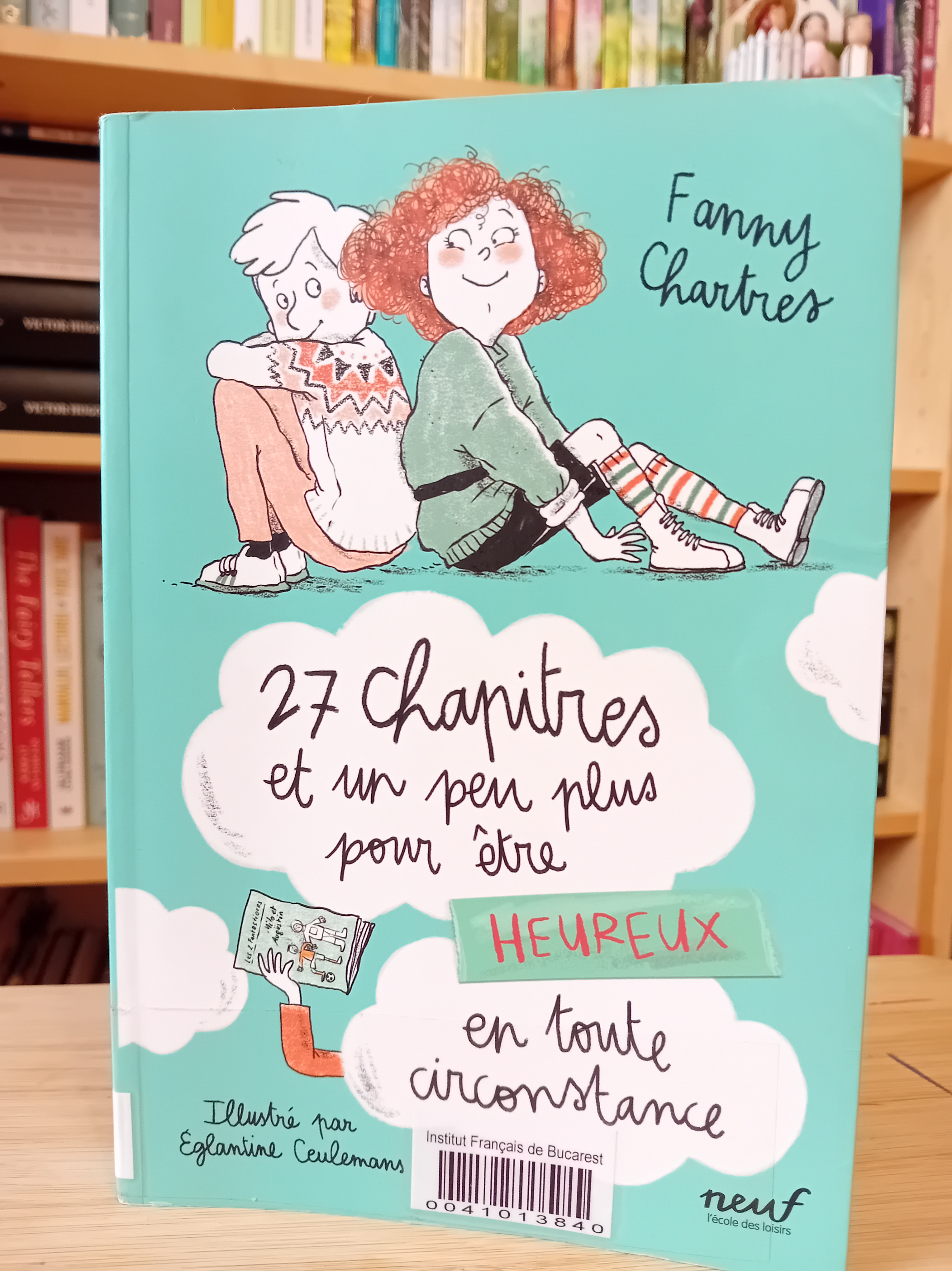 Ultima carte terminată în luna iulie a fost tot una împrumutată de la Institut, și anume, 27 chapitres et un peu plus pour être heureux en toute circonstance de Fanny Chartres, ilustrată de Eglantine Ceulemans (pe care o găsiți și la Librăria Kyralina din București).