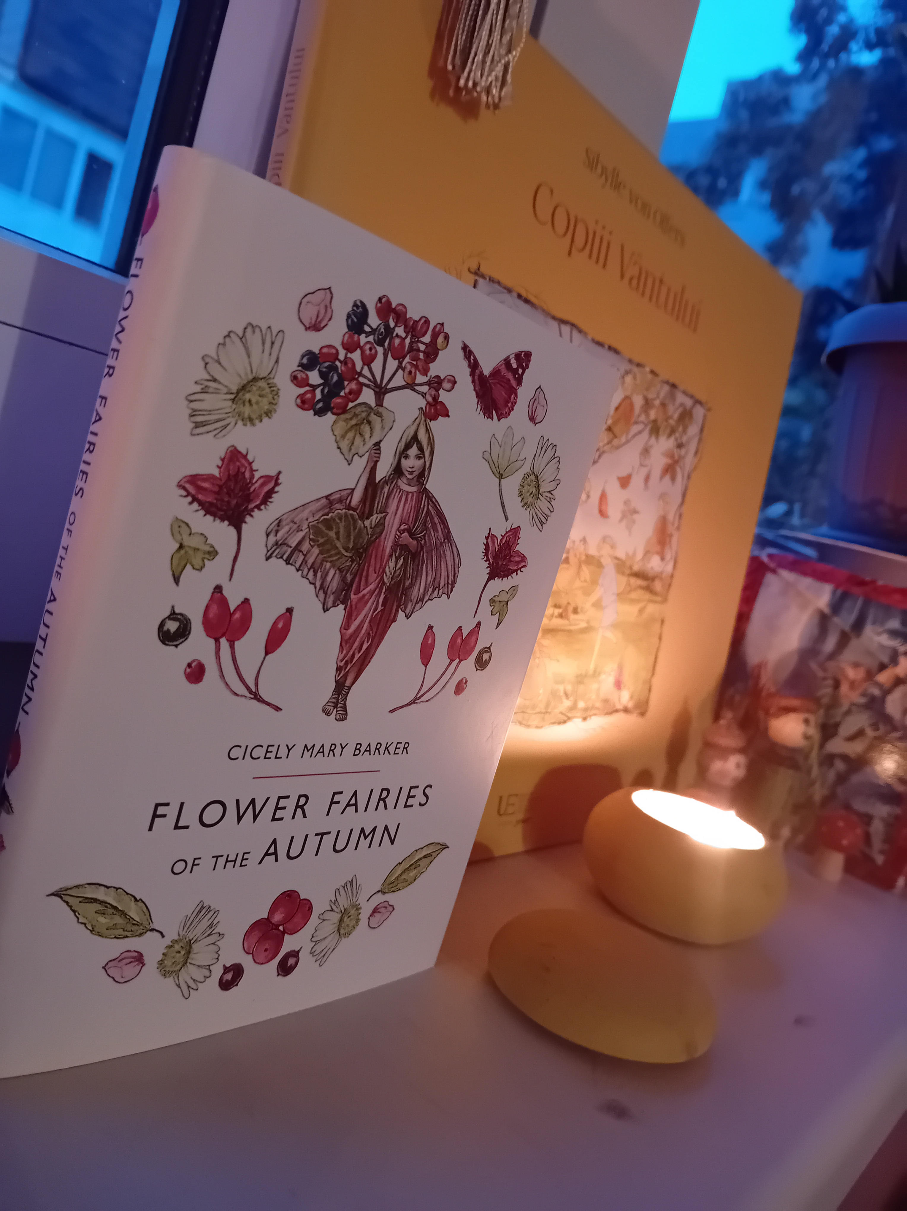După aceea, am citit un volumaș de poezii din seria Flower Fairies, Flower Fairies of Autumn de Cicely Mary Barker, după care am fost la Institutul francez și am citit acolo câteva cărți ilustrate, ca să putem avea loc pe fișă pentru alte cărți de luat acasă.