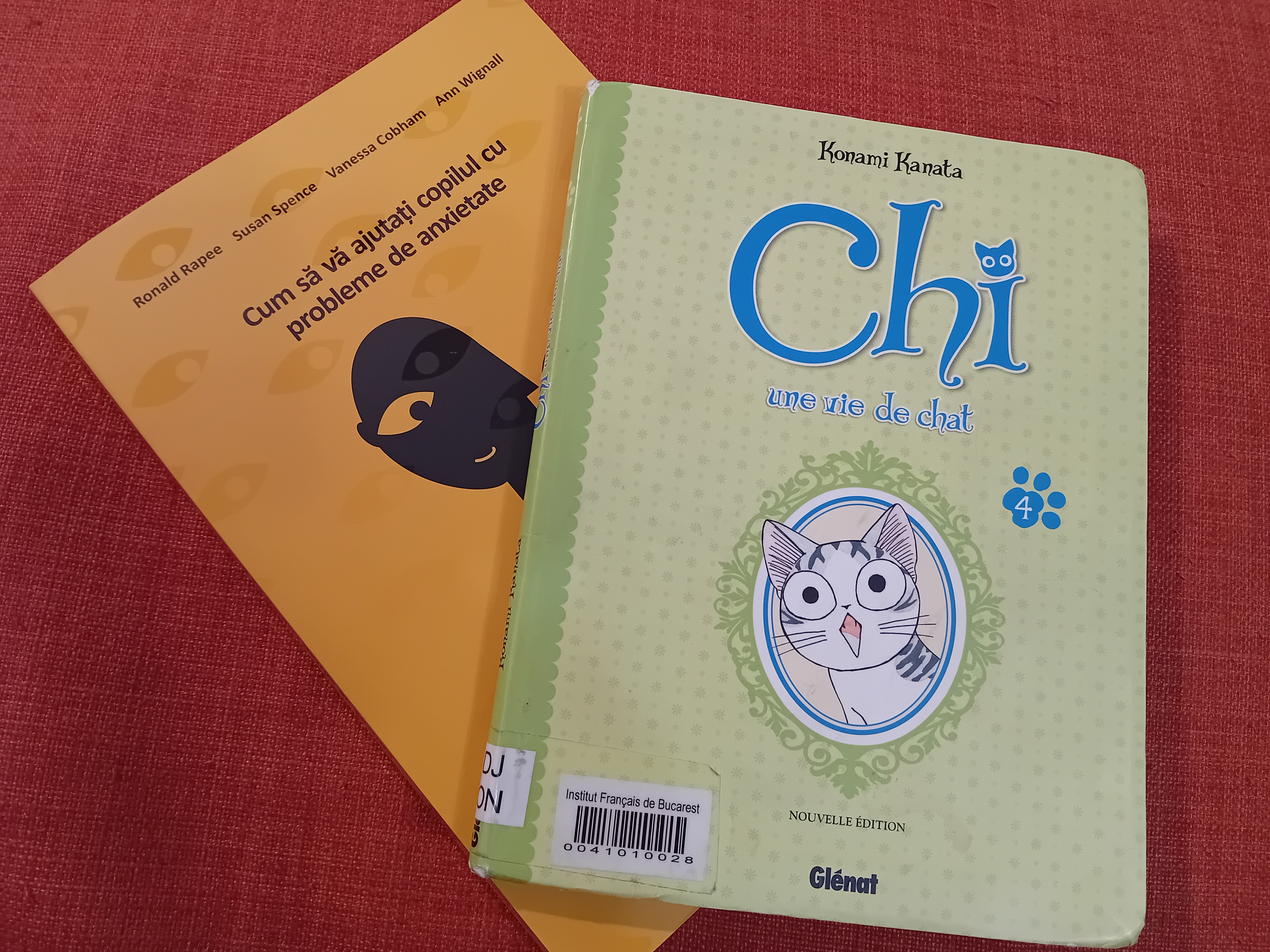 Motivată de apariția în limba română a primului volum din manga Chi – viață de pisică de Konami Kamata (pe care îl citisem mai de mult tot de la Institutul francez, dar uitasem), am împrumutat volumele 2-4 și acestea au fost exact genul de lectură de care aveam nevoie în timp ce mă documentam despre gestionarea anxietatății și a fobiilor la copii.
