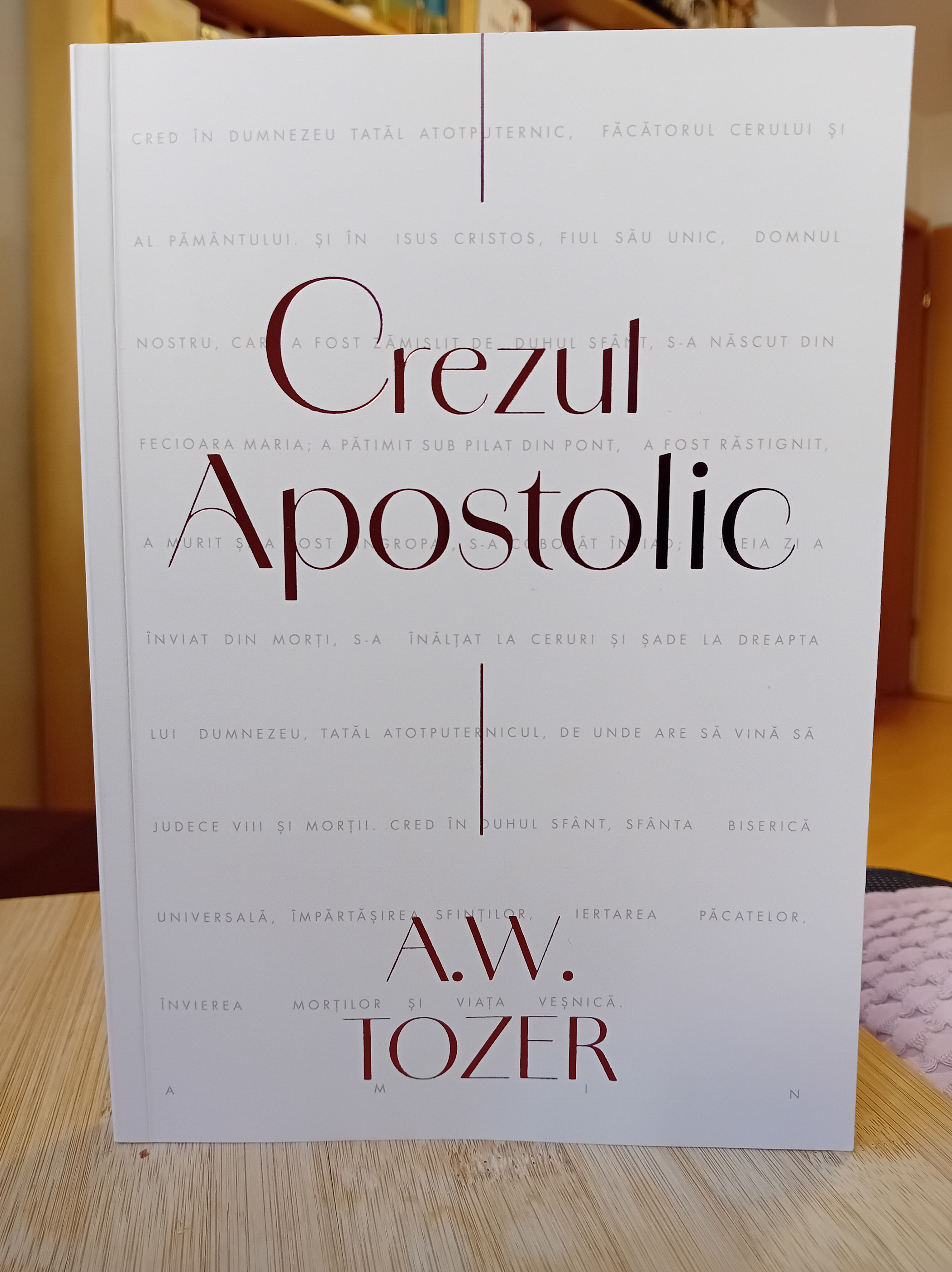 Doresc să vă aduc în atenție volumul intitulat Crezul apostolic de A.W. Tozer, compilat de Kevin Mungons. Acesta a pus laolaltă cele mai bune scrieri ale lui Tozer despre crezuri și idei referitoare la crezuri, selectate din predici, din articole și din cărțile sale.