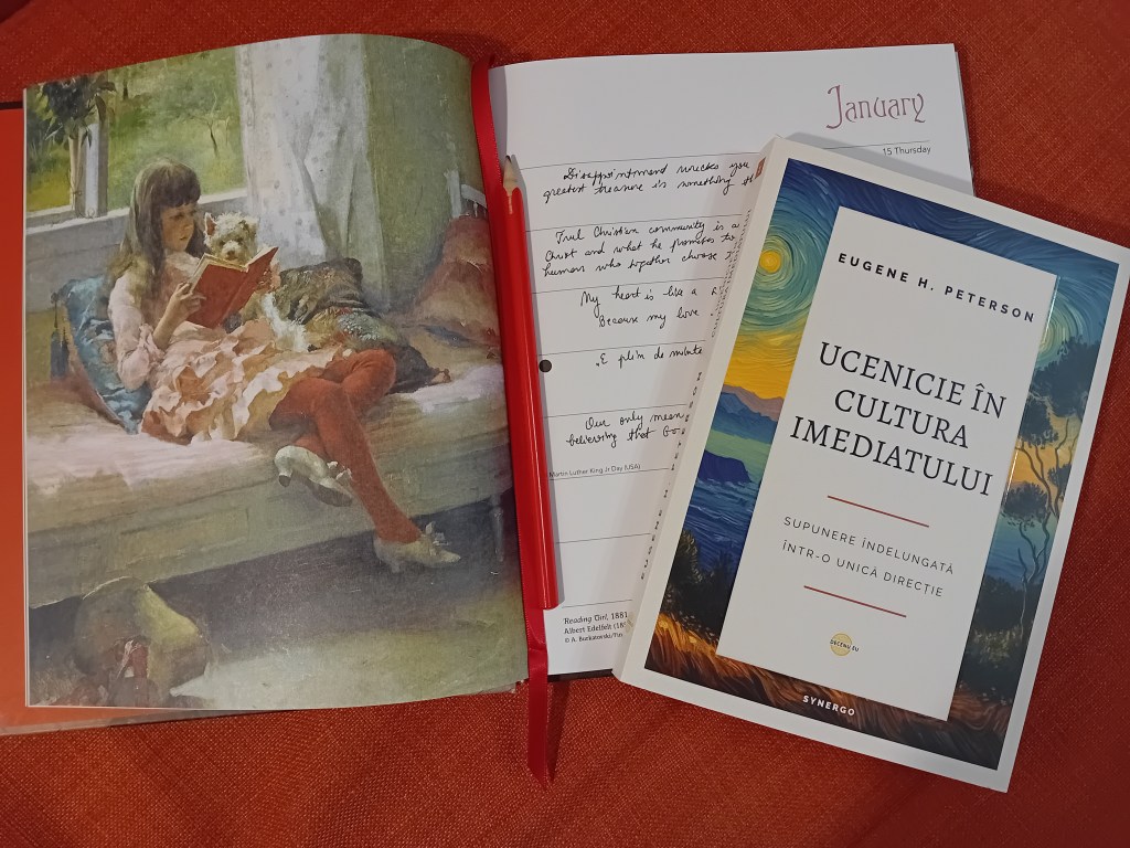 În paralel, am reușit să termin de parcurs și volumul Ucenicie în cultura imediatului – Supunere îndelungată într-o unică direcție de Eugene H. Peterson, cu privire la care aveam mari așteptări și eram foarte entuziasmată să o citesc.