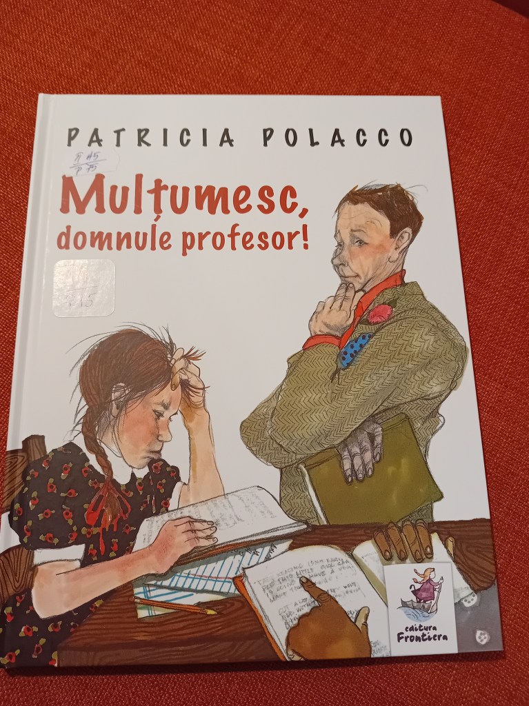 Am mai citit apoi o carte împrumutată de la bibliotecă, pe care, tot așa, o mai văzusem recomandată de alți cititori, și anume, Mulțumesc, domnule profesor! de Patricia Polacco.