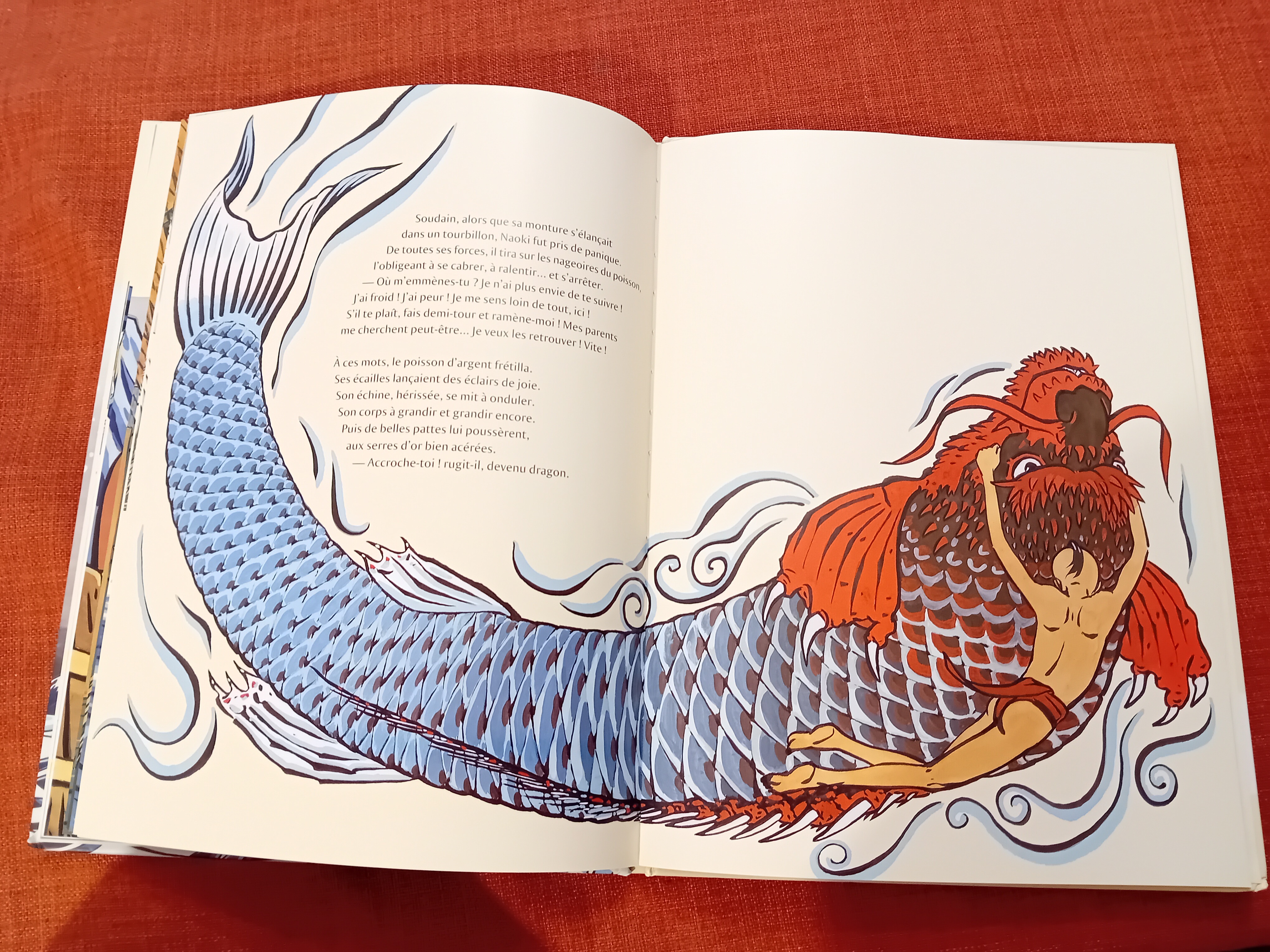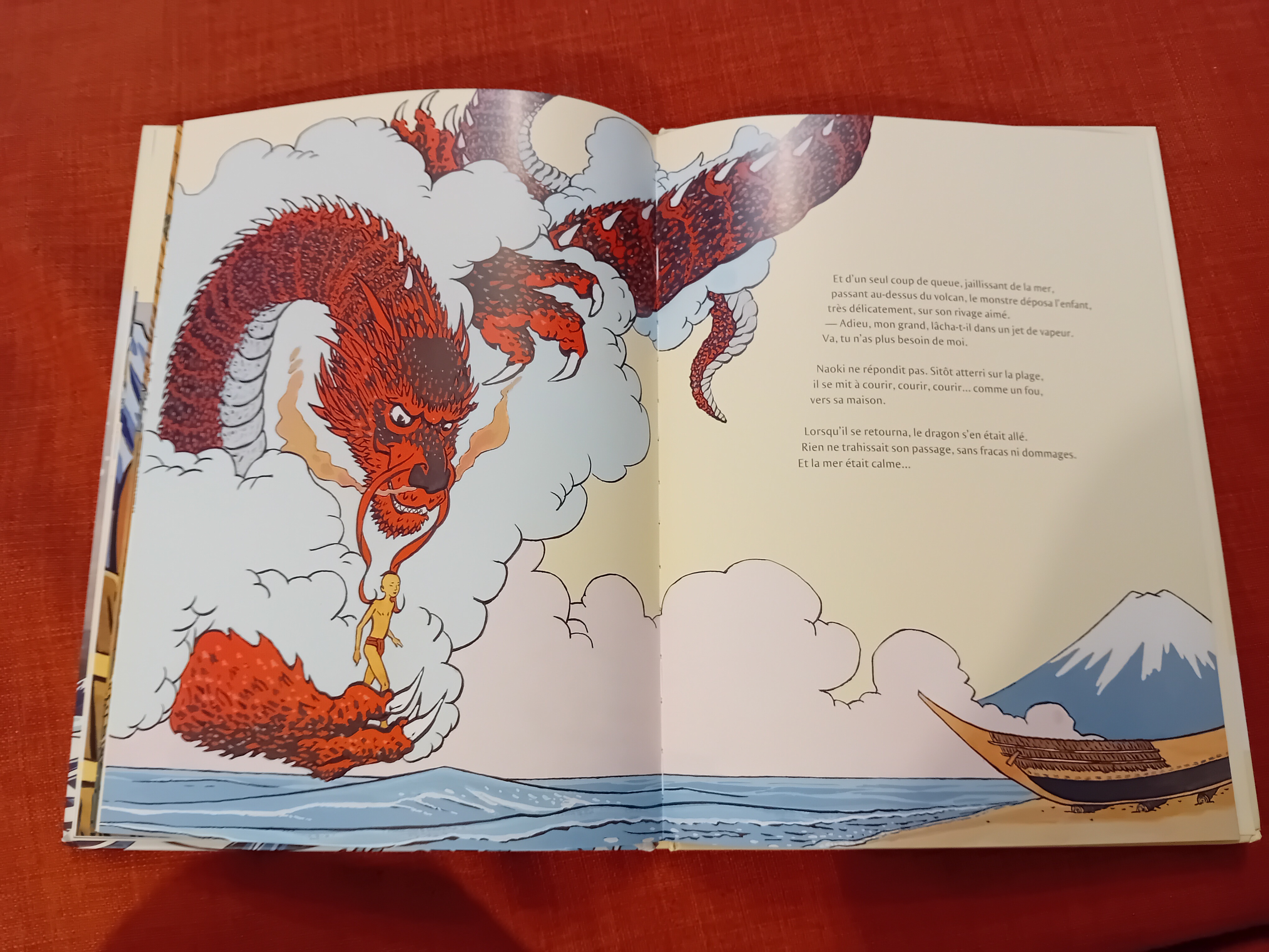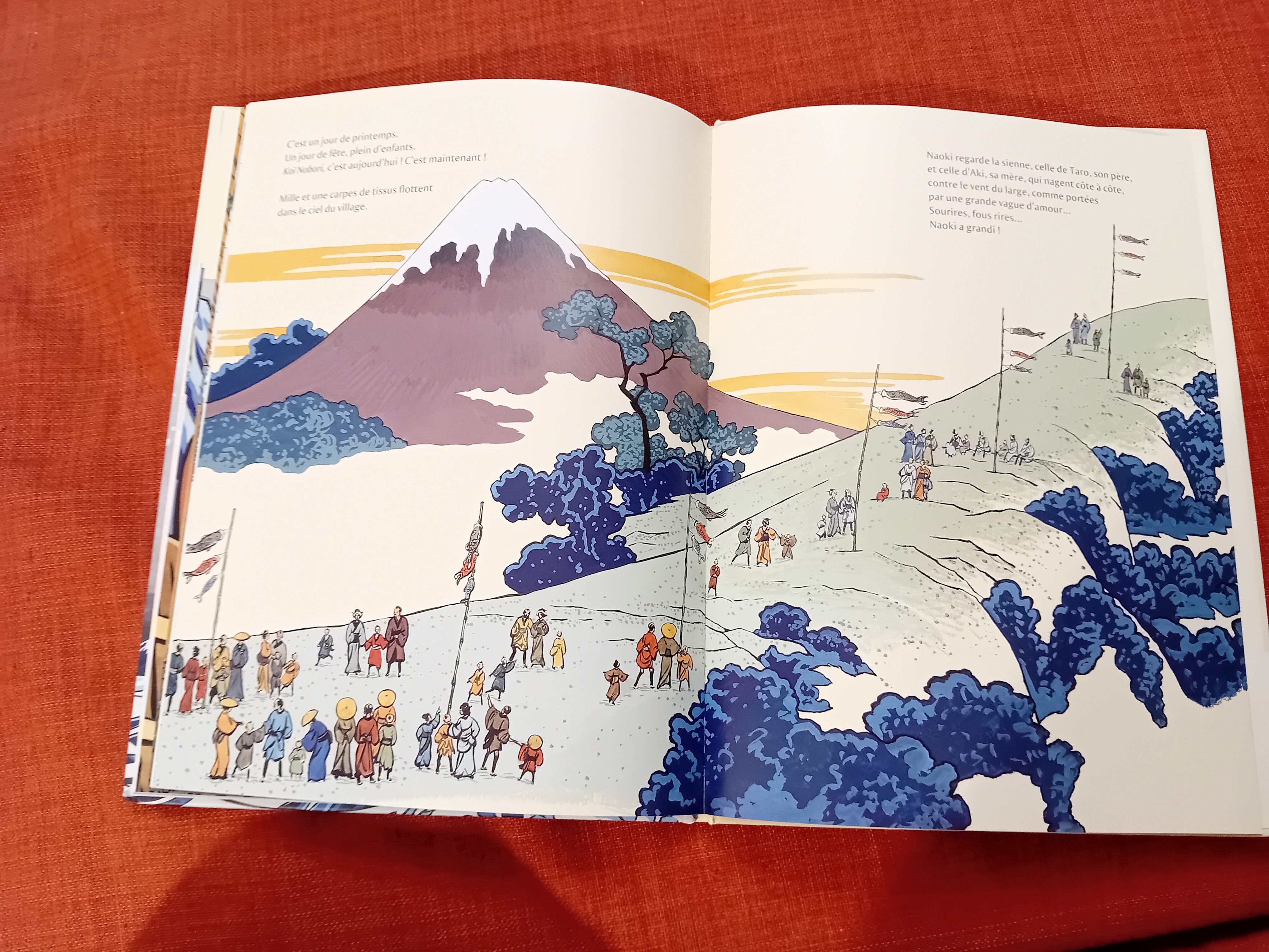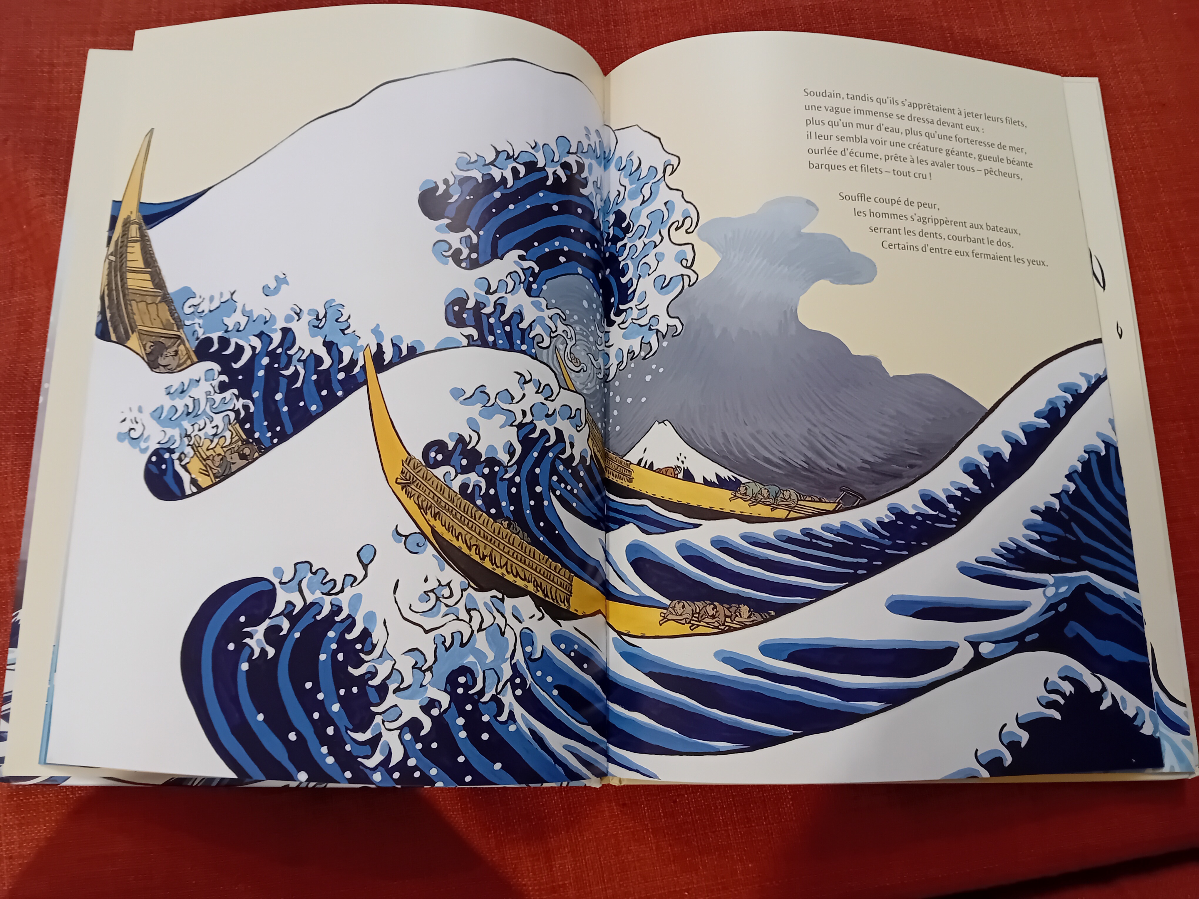 Vreau să menționez în mod aparte volumul ilustrat La grande vague de Veronique Massenot, cu ilustrații de Bruno Pilorget, care imaginează o posibilă poveste din spatele celebrei stampe a lui Hokusai, Marele val de la Kanagawa. Puteți vedea mai jos câteva dintre ilustrații.