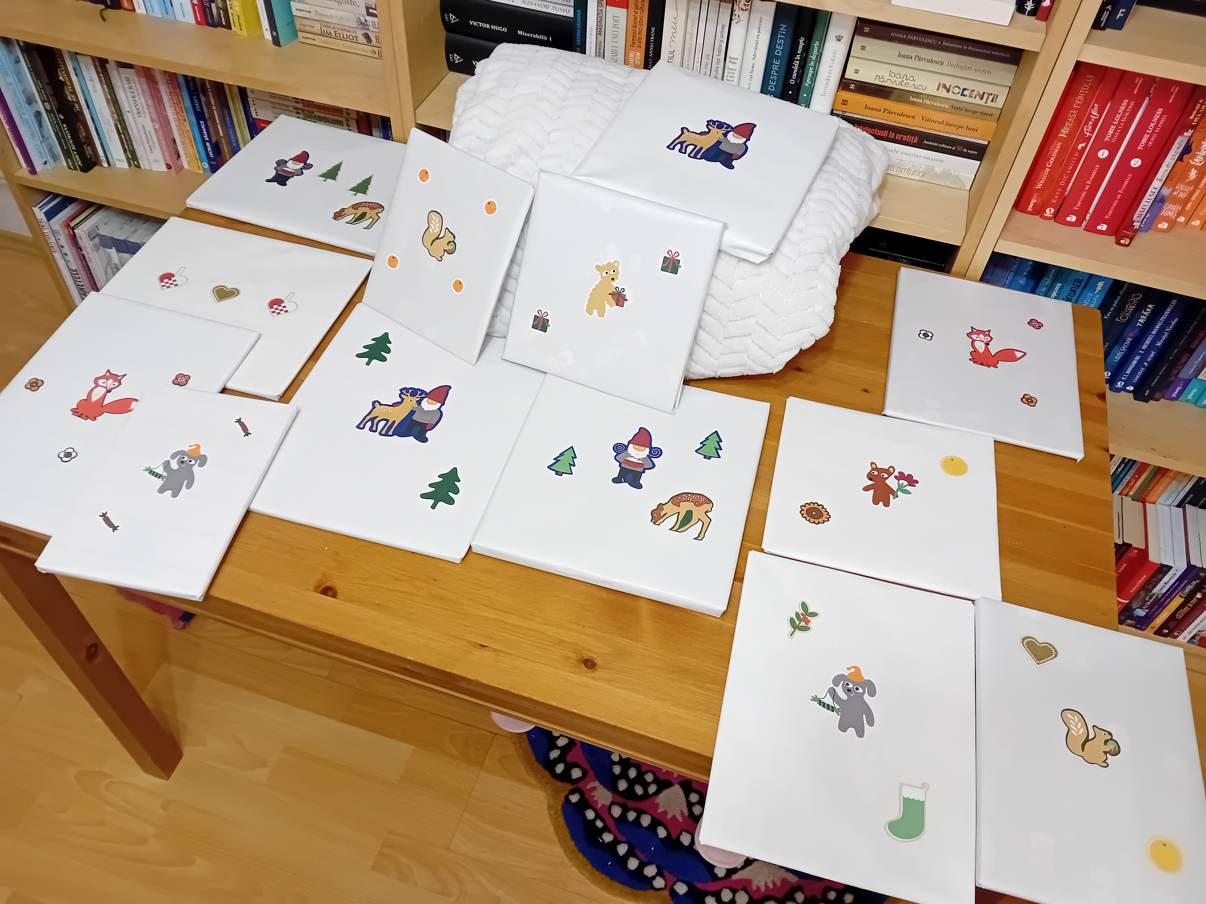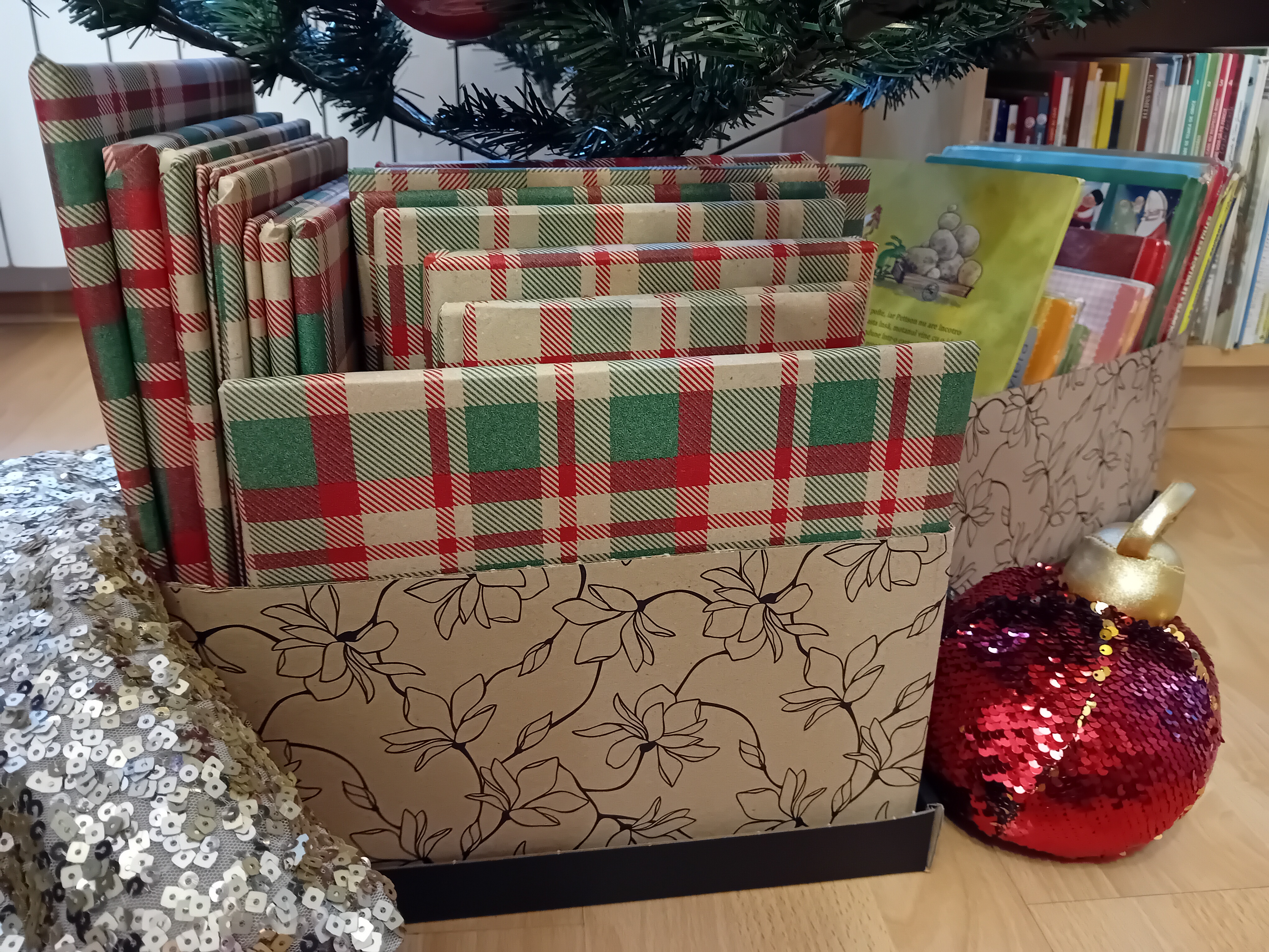 Am început în perioada de Advent, în care am împachetat 30 de cărți (de pe 1 decembrie până la Epifanie, pe 6 ianuarie) cu tematica de Advent/Crăciun, ceea ce mai făcusem și în alți ani. Anul trecut a fost însă un ritual zilnic care l-a ajutat pe Mihai într-o perioadă dificilă să anticipeze ceva pozitiv în fiecare zi.