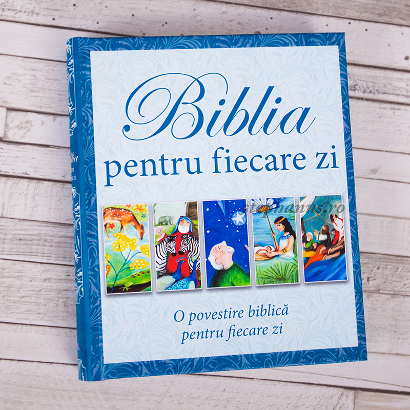 Biblia pentru fiecare zi, o ediție îngrijită de Societatea Biblică Interconfesională din România. Este un format clasic cu câte o povestire biblică pentru fiecare zi, un verset și o întrebare. Ceea ce mă face să recomand această versiune de Biblie pentru copii este, în primul rand, calitatea textului și apoi frumusețea ilustrațiilor. Textul este editat impecabil, este accesibil, natural, lipsit de tendința limbajului de lemn pe care l-am întâlnit în alte Biblii pentru copii.